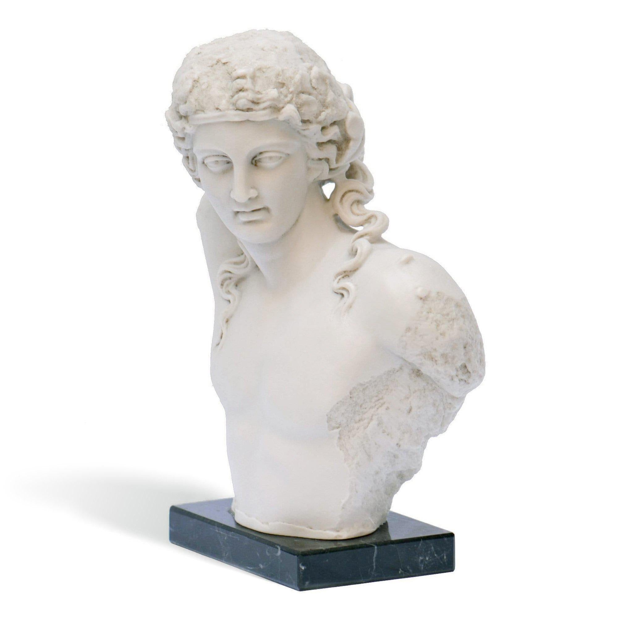 Diese Skulptur ist von den Meisterwerken der griechischen Kunst inspiriert und fängt die Eleganz und Perfektion der menschlichen Form ein, die in der Antike so gefeiert wurden. Der aus Marmor geformte Torso ist eine Hommage an die ideale Schönheit und künstlerische Meisterschaft der damaligen Zeit.
