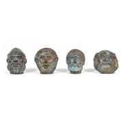 Diese etruskischen Masken sind eine Reproduktion in Bronze derjenigen, die im antiken römischen Theater verwendet wurden.