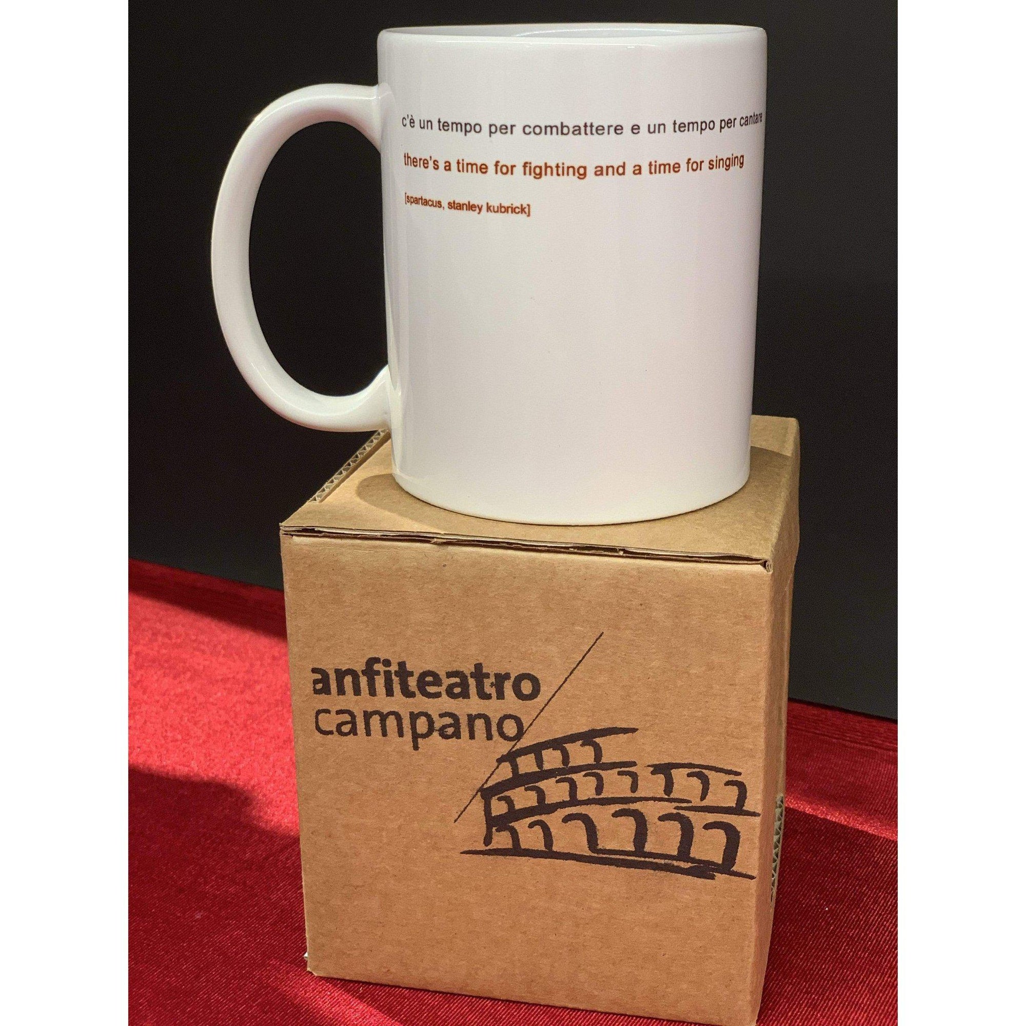 Unser Fighter-Becher ist auf einer Seite mit dem Bild des berühmten Spartacus, des thrakischen Gladiators, verziert, der im Amphitheater kämpfte mit dem der Sklavenaufstand begann. Auf der anderen Seite steht der Satz: „Es gibt eine Zeit zum Kämpfen und eine Zeit zum Singen“ von Stanley Kubrick, der Spartacus in seinem Film von 1960 feierte.