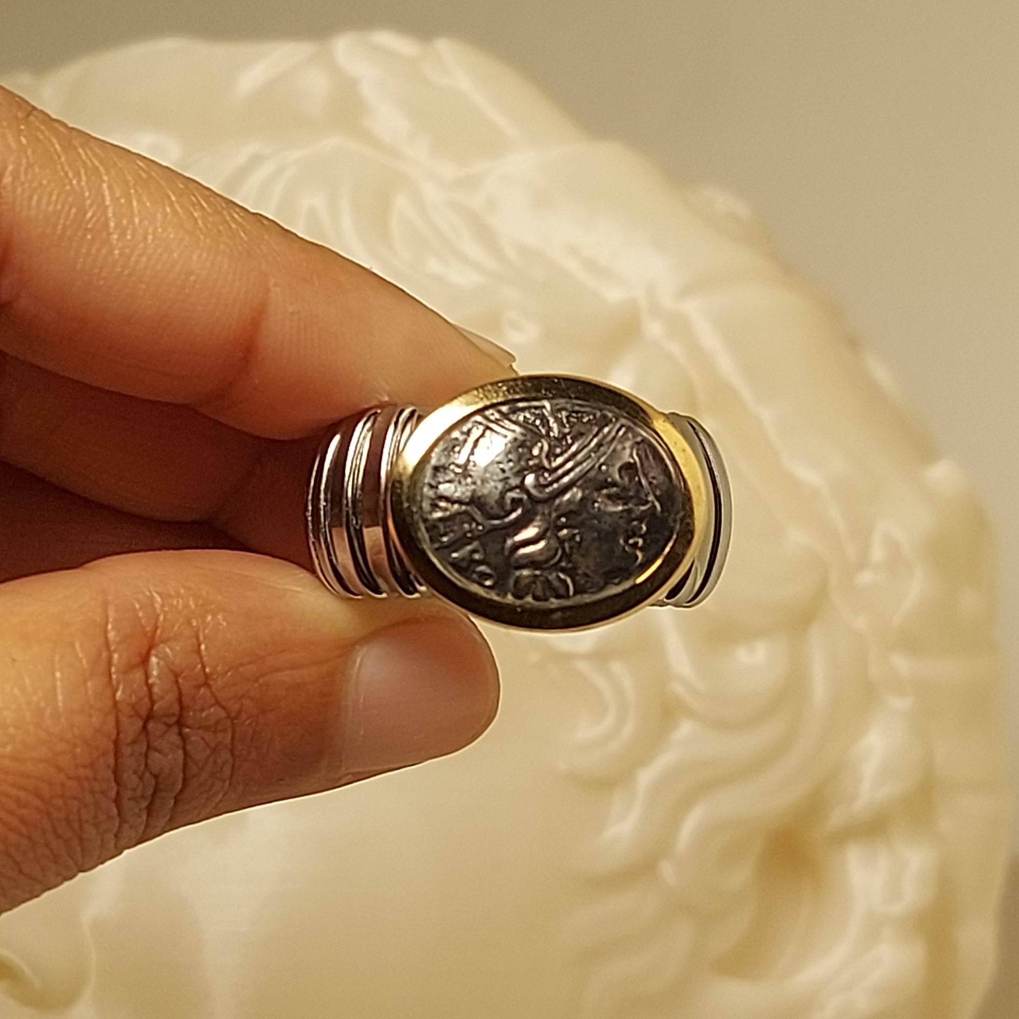 Roman coins, like the one depicted on this ring, were much more than simple tools of economic exchange. In ancient Rome, coins were considered real propaganda tools, as they bore the effigy of the emperor or important political figures and deities. Their circulation allowed the image of the central power to be spread throughout the empire.