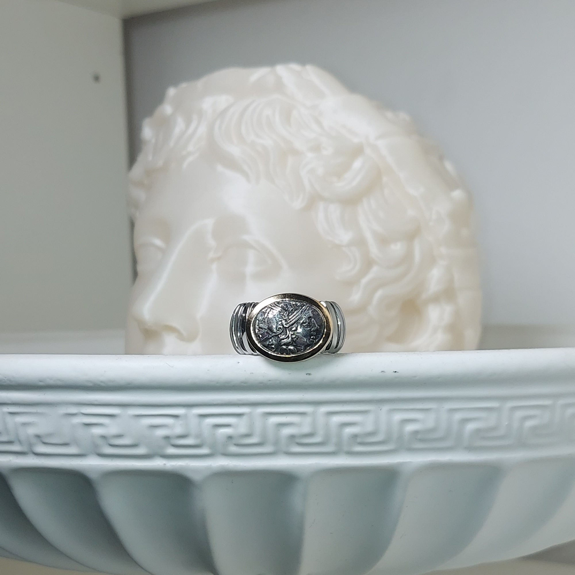 The Ancient Coin Ring is an accessory that blends elegance and historical significance. Made of 925 silver, this jewel features a detailed reproduction of an ancient coin, symbol of the economic power and culture of the Roman Empire. The ring, engraved by hand, is a copy of the ancient denarius and rdepicts the emperorromano.