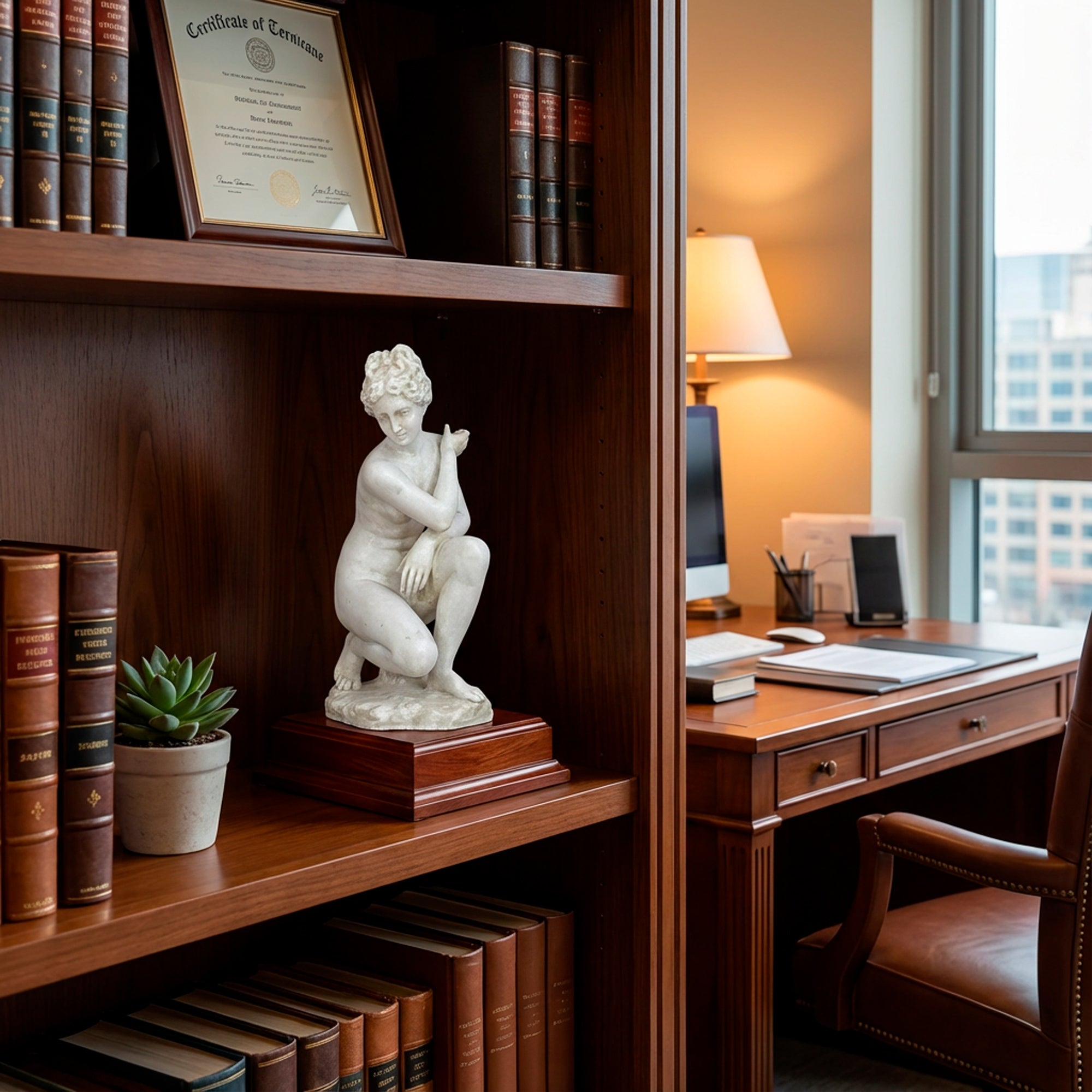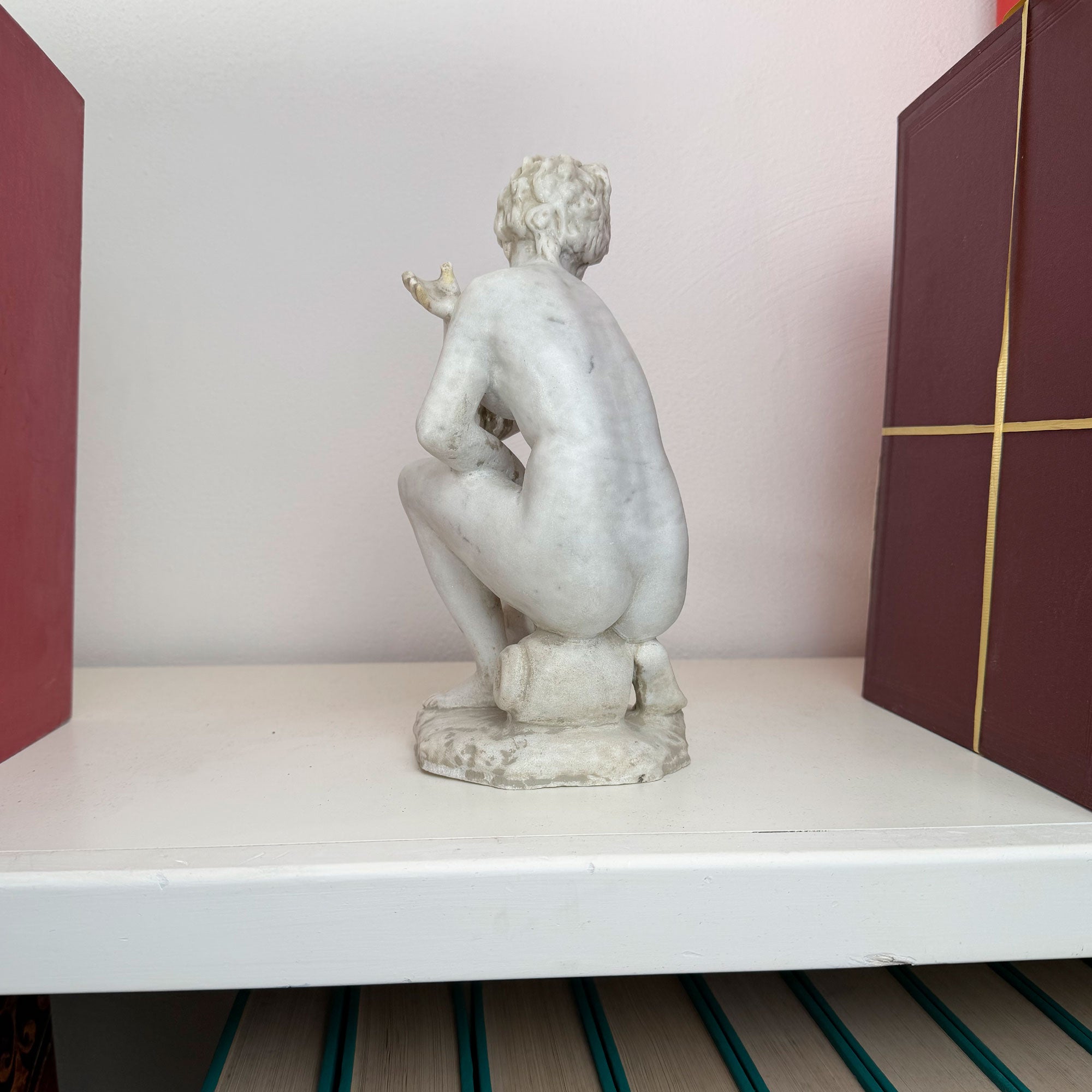 The figure of Venus, known as Aphrodite in Greek mythology, has often been depicted in ancient artworks in captivating poses, such as the crouching one, symbolizing grace and eternal beauty. The crouching version of the goddess recalls one of the most famous models of Hellenistic sculpture, often reproduced in the thermal baths of ancient Rome as a symbol of elegance and seduction.
