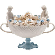 This cup in fine Capodimonte porcelain isdecorated by hand by master ceramists. It is milky white in colour, typical of Capodimonte porcelain. Decorated with white and blue flowers, which give a touch of colour. To embellish it even more, there are two angels placed near the handles.