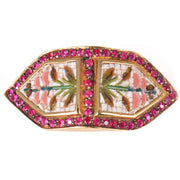 Micromosaic jewelry became very popular during the time of the Grand Tour, when European nobles visited Italy and purchased jewelry and other artistic objects as souvenirs. These small mosaics often depicted landscapes, monuments or floral motifs, just like the Hibiscus flower, a symbol of beauty and delicacy.