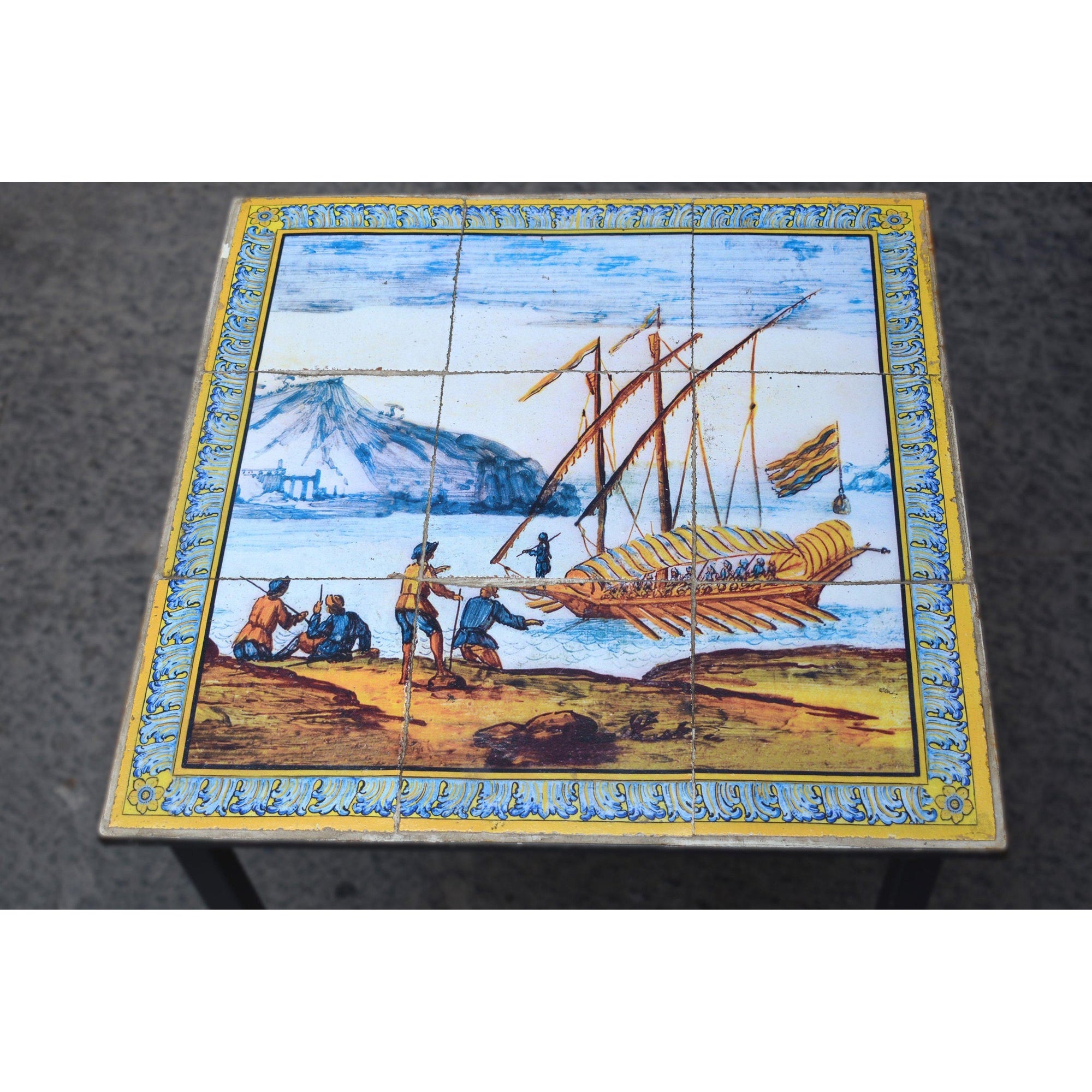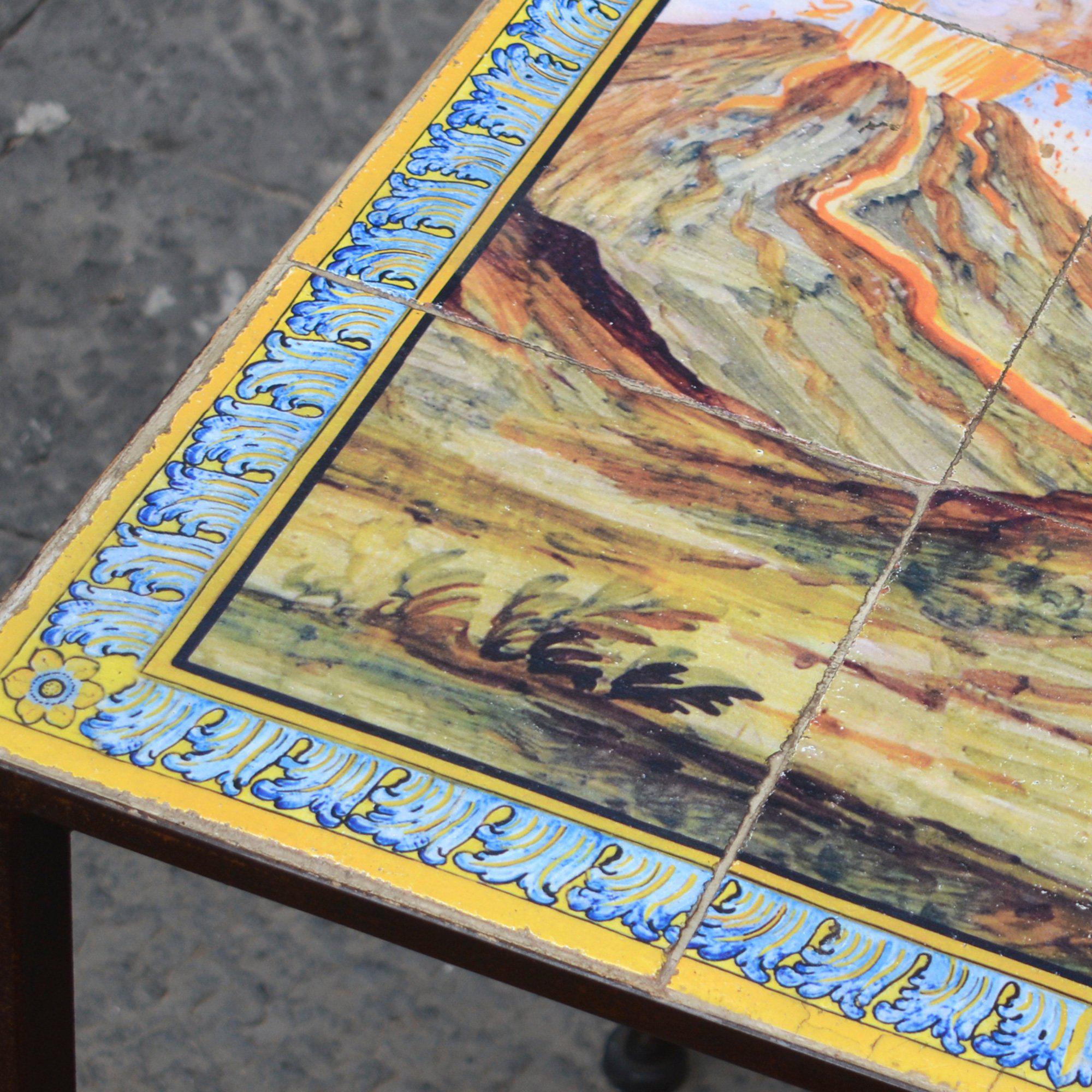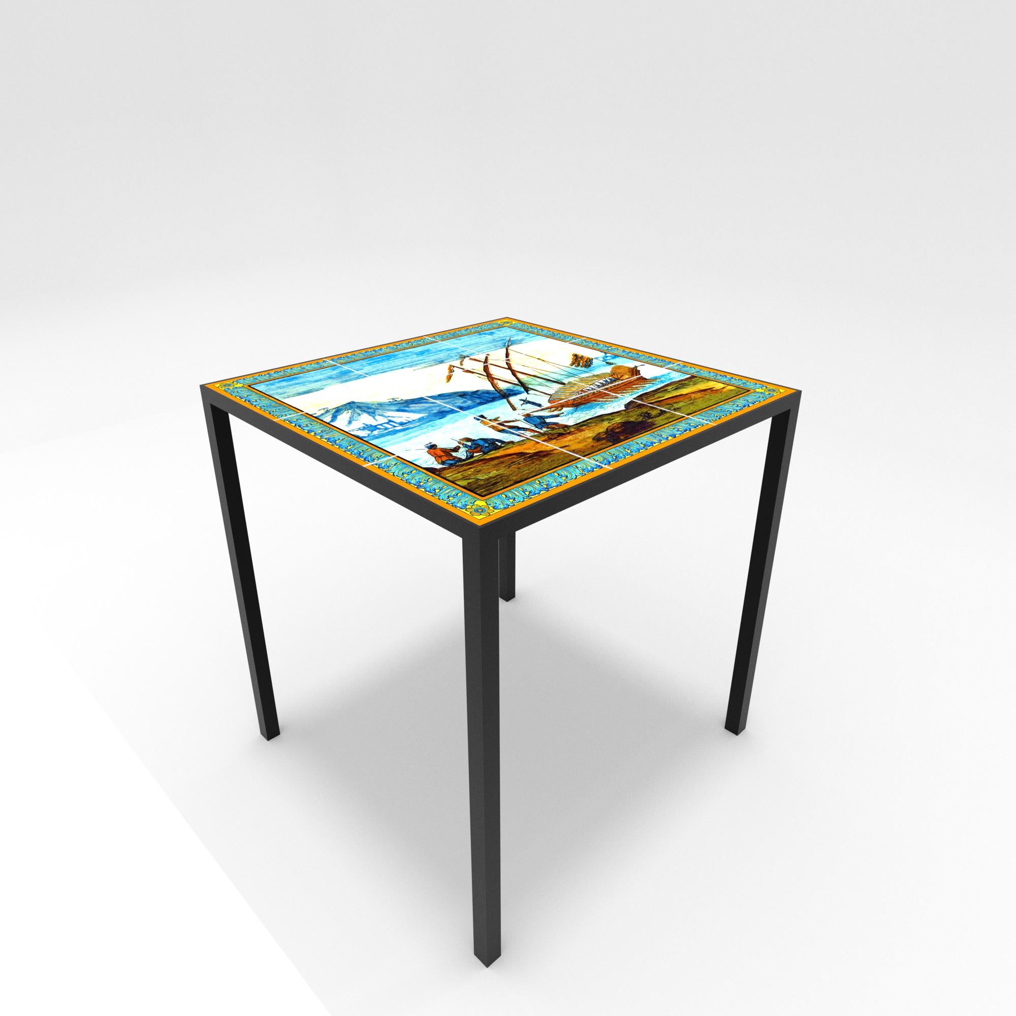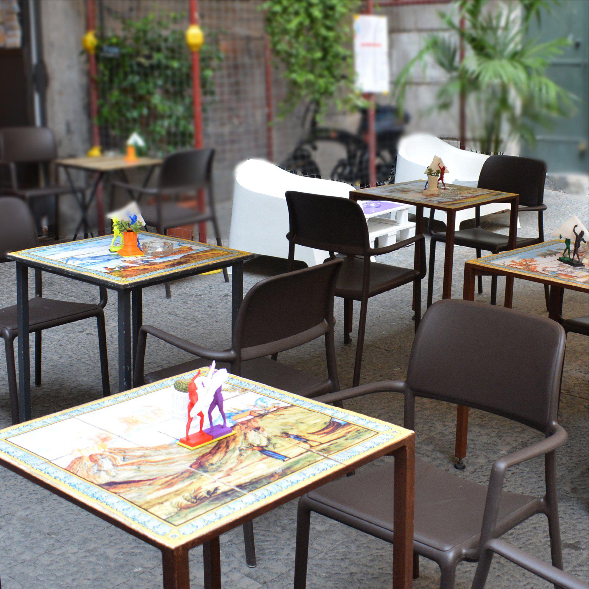 Inspired by the decorations of the famous Neapolitan cloister, some marine, rural and mountain landscapes have been reproduced on this panel, as well as scenes of life and celebration, depicted in the backrests of the benches of the Cloister of Santa Chiara.