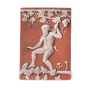 Plate in terracotta with the bas-relief of Silenus worked in ancient technique . T rat from a matrix of the first century. BC of the ancient Greece, preserved in the Archaeological Museum of Arezzo.