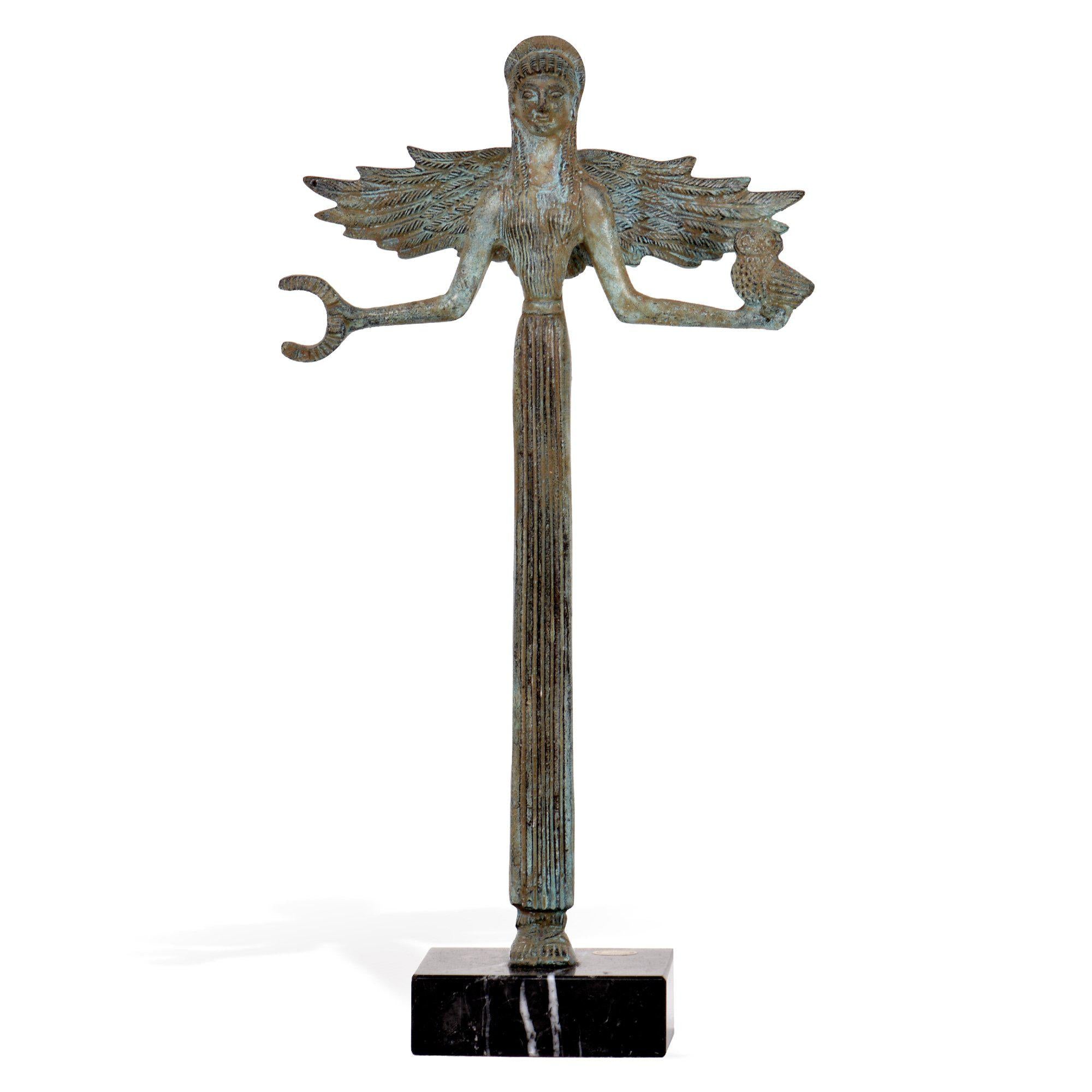 This sculpture depicting the Winged Nike is a reproduction in bronze of the original statue, kept at the National Archaeological Museum of Athens.