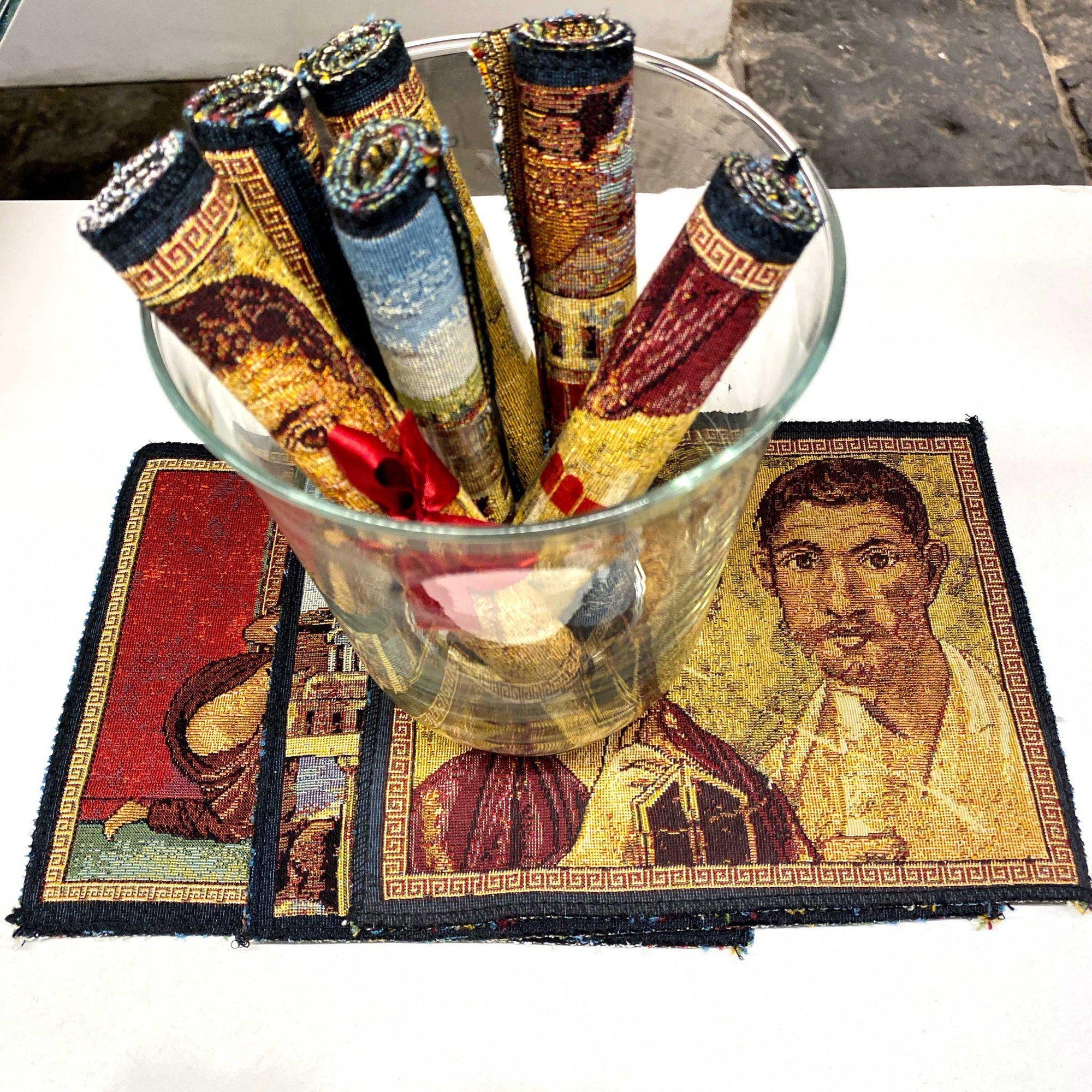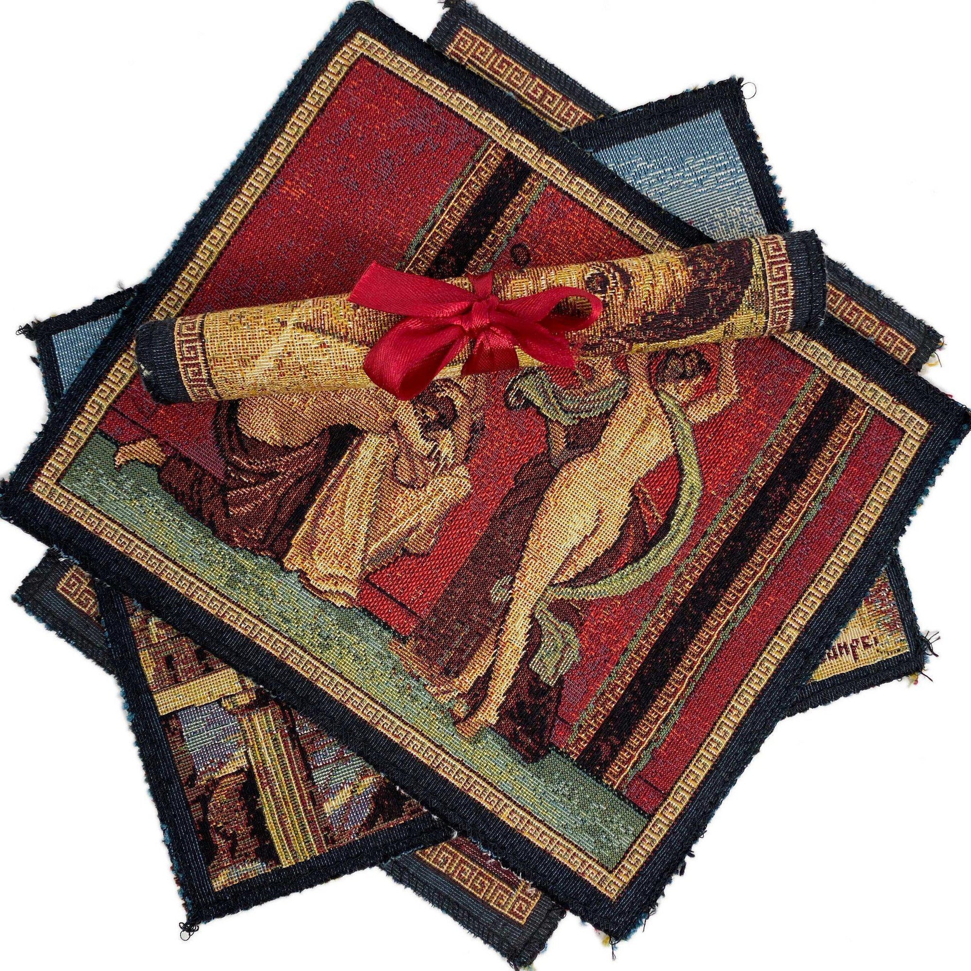 Agrega un toque de elegancia clásica a tu espacio de trabajo con el Mouse Pad Arazzo Jacquard, un accesorio que une técnicas de tejido artesanal e inspiración artística romana.