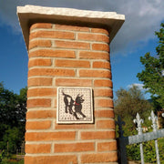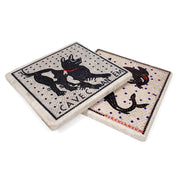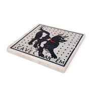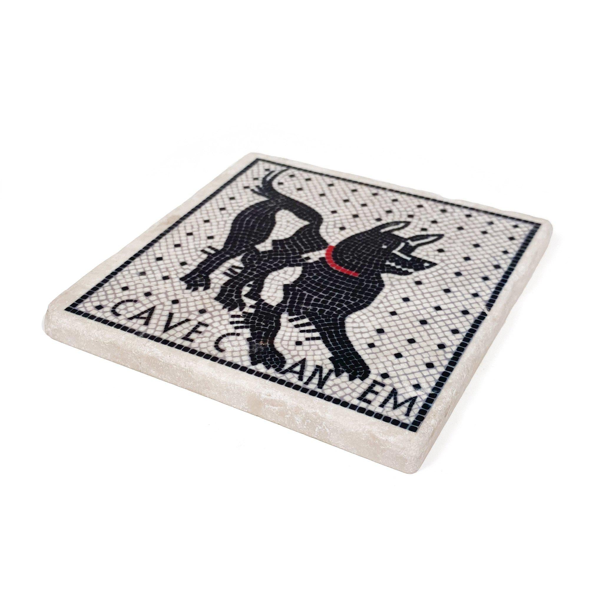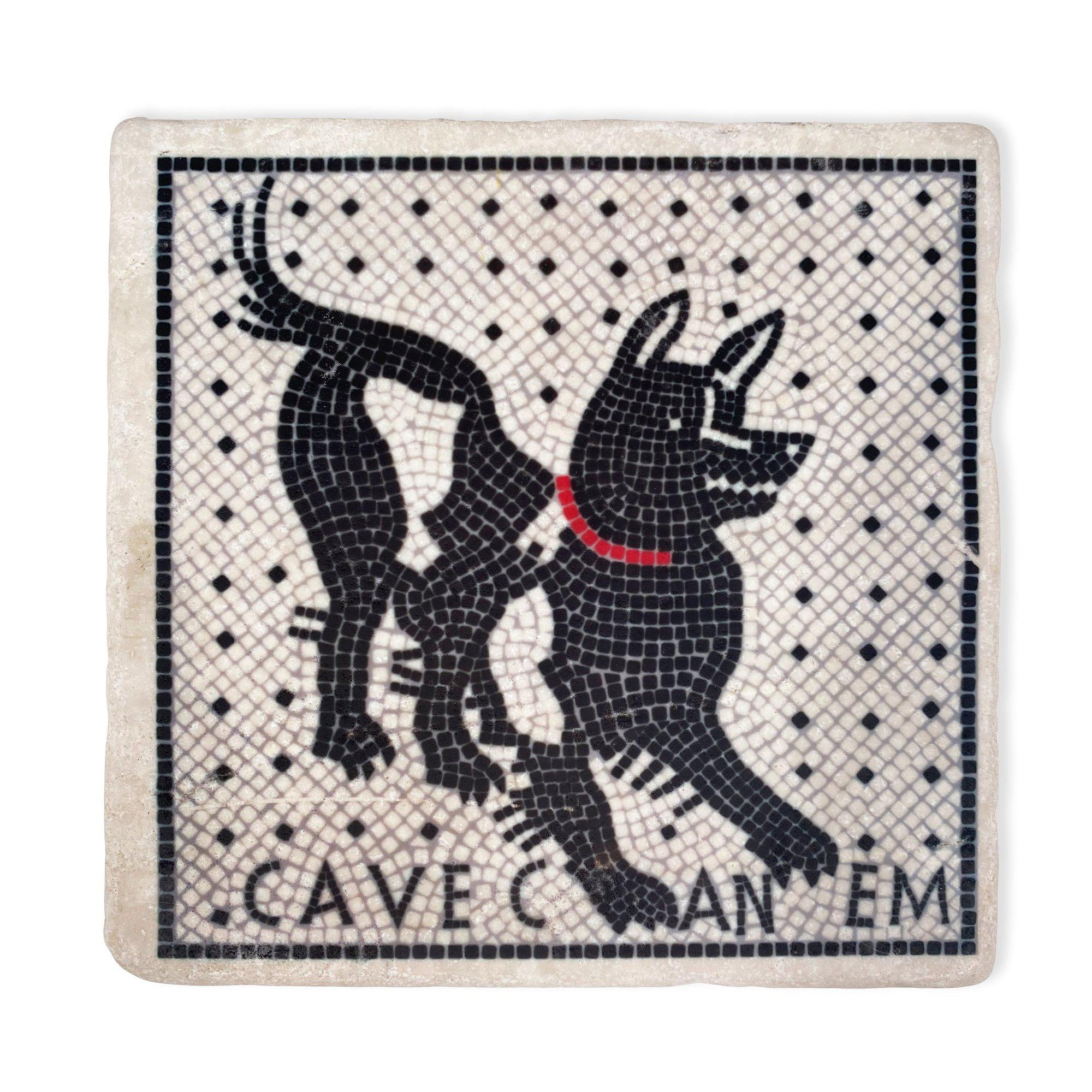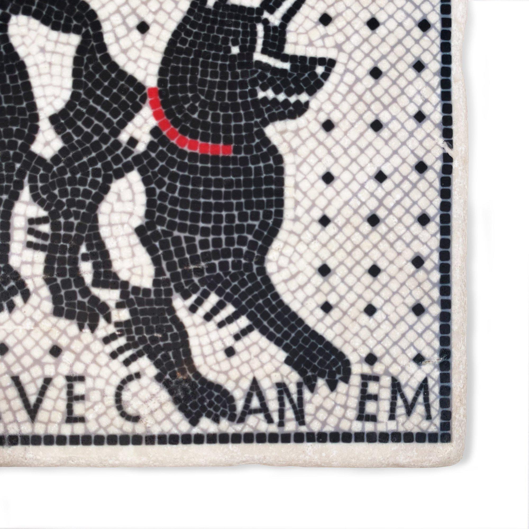 Esta reproducción en mármol captura la esencia de la famosa advertencia "Cave Canem", que significa "Cuidado con el perro", utilizada a menudo en los mosaicos colocados en la entrada de las domus romanas para disuadir a los intrusos. Perfecto para los amantes de la historia, el arte antiguo y la decoración sofisticada, este azulejo añade un toque de clase y autenticidad a cualquier espacio.