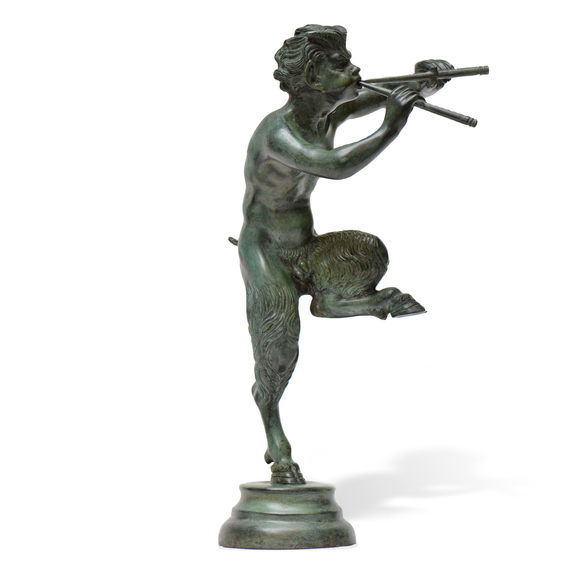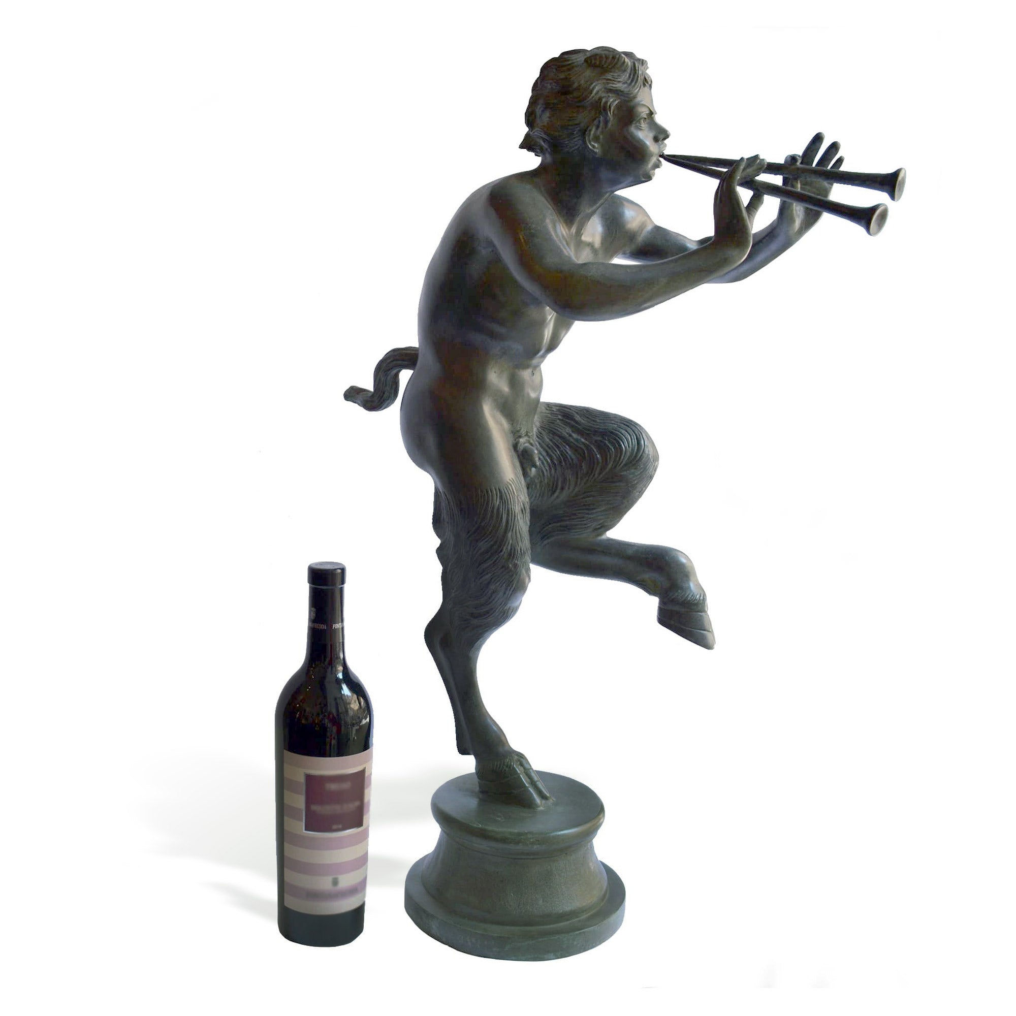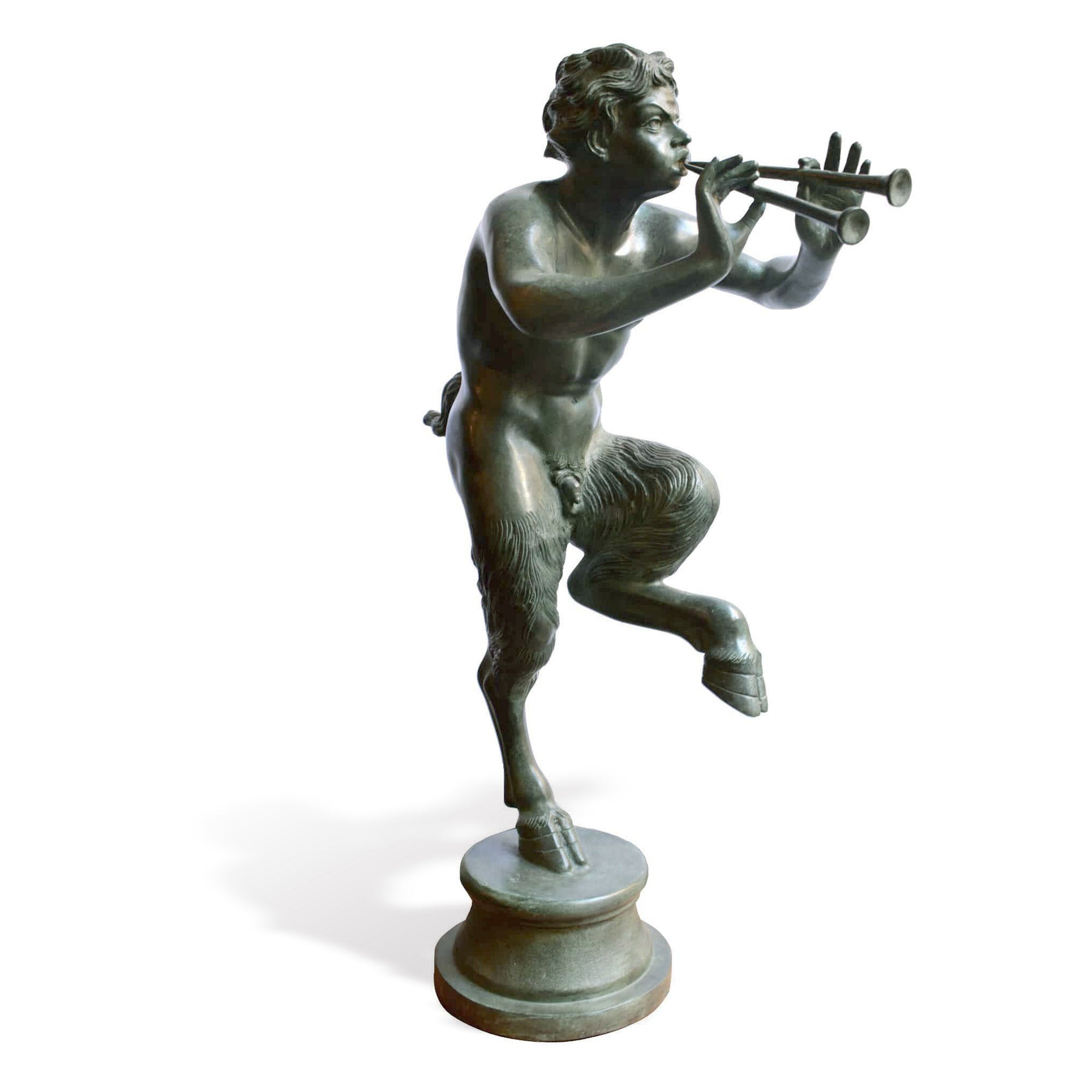 Esta escultura que representa el fauno con flauta se inspira en algunos dibujos encontrados durante las excavaciones de Pompeya y en un fresco conservado en el museo nacional de Nápoles.