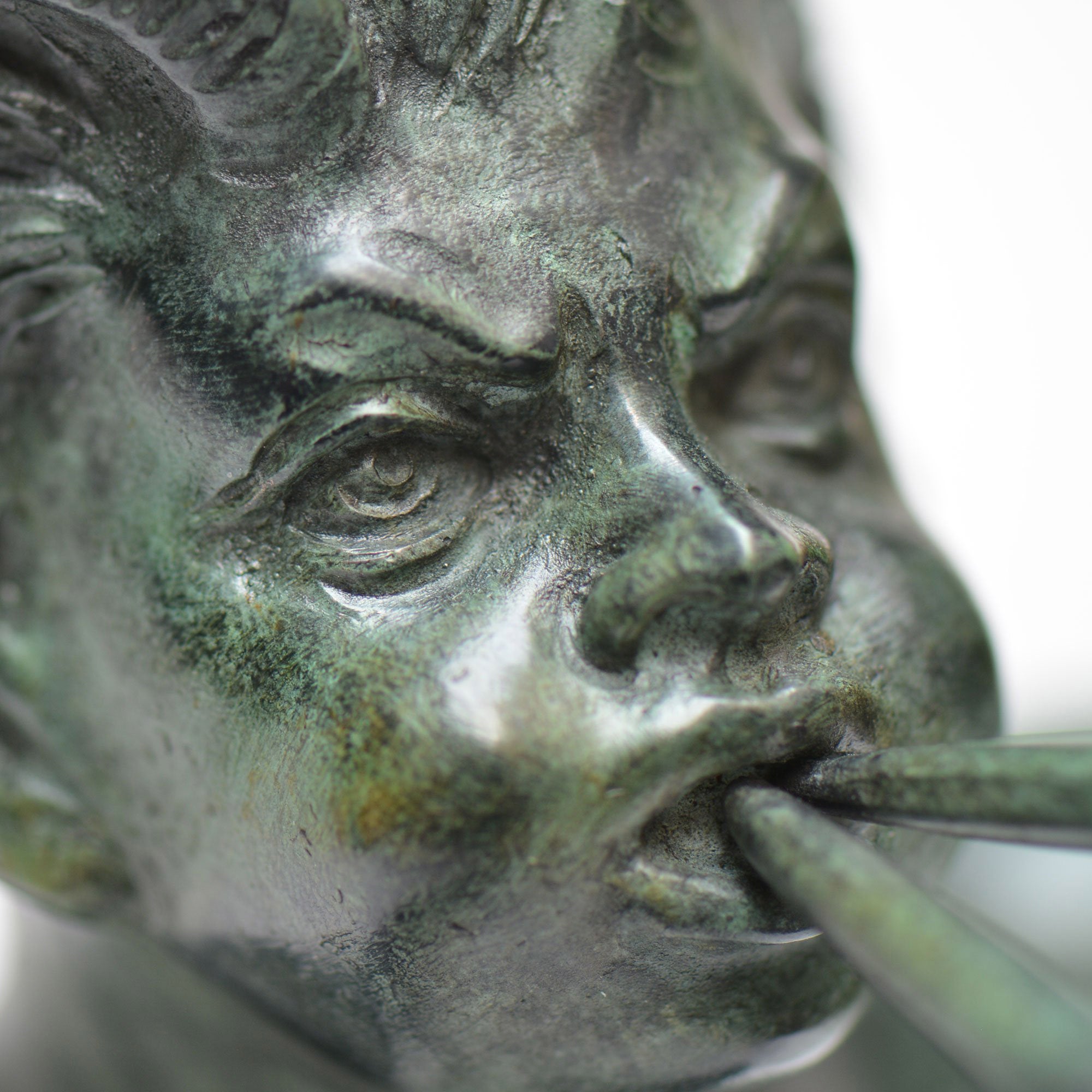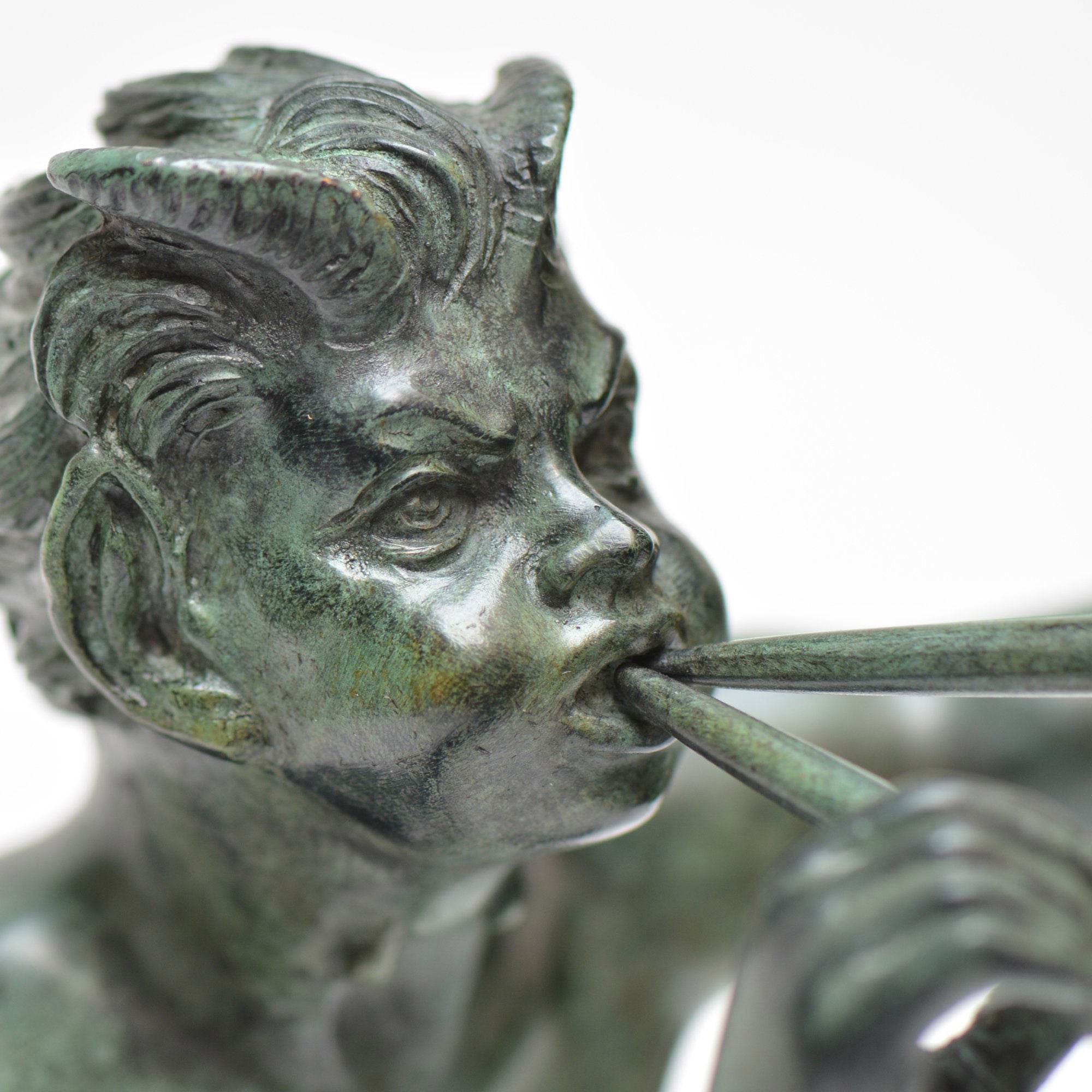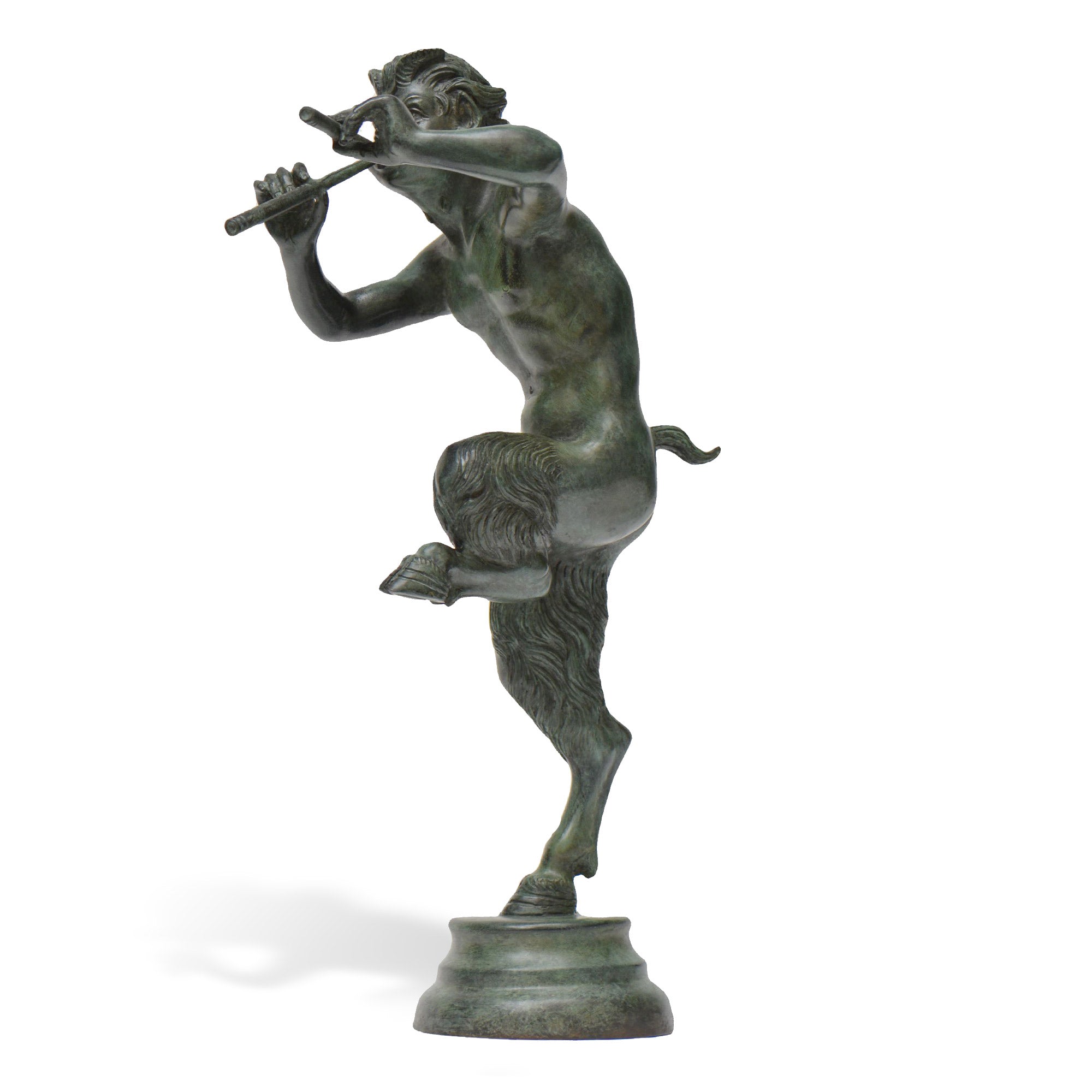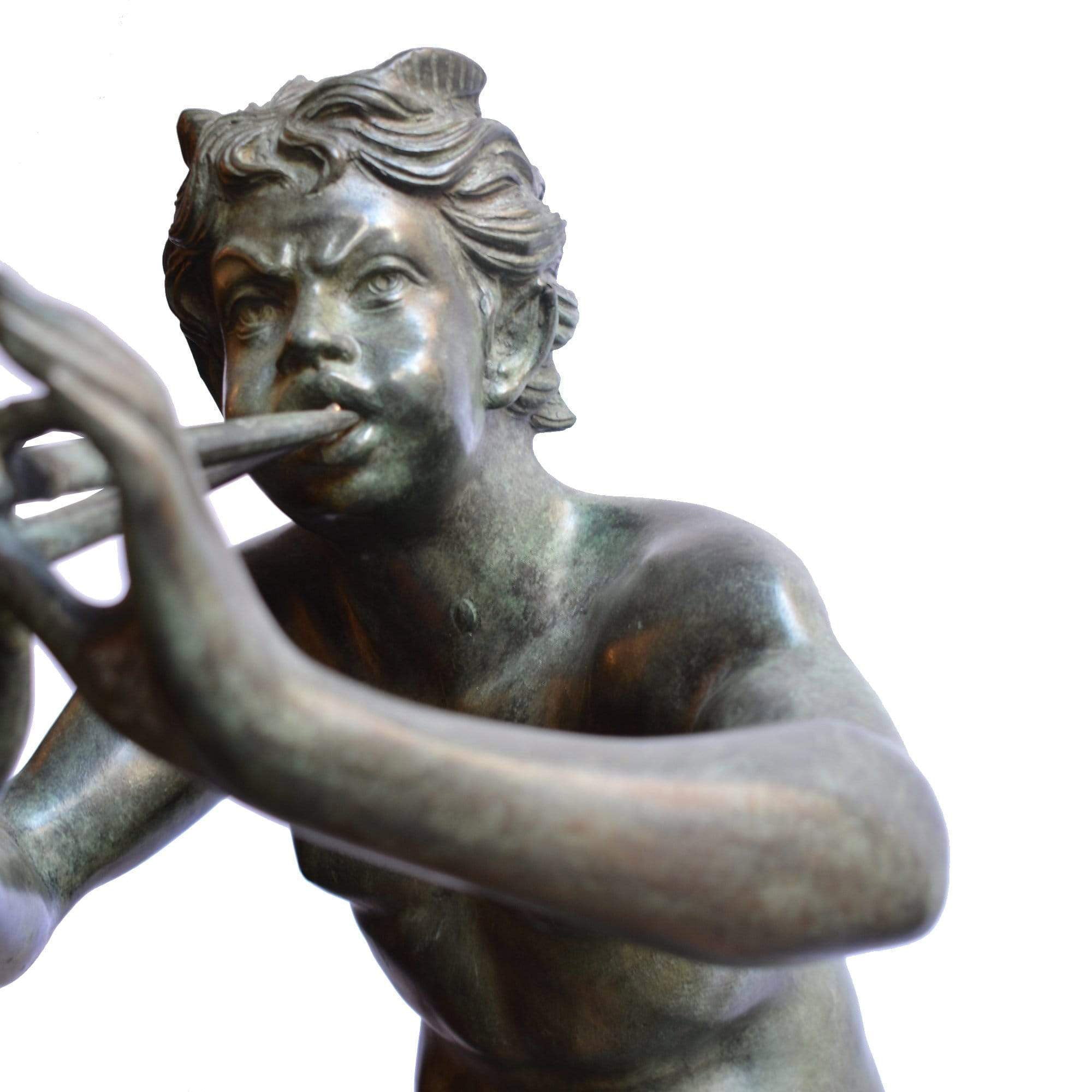 Esta escultura que representa el fauno con flauta se inspira en algunos dibujos encontrados durante las excavaciones de Pompeya y en un fresco conservado en el museo nacional de Nápoles.