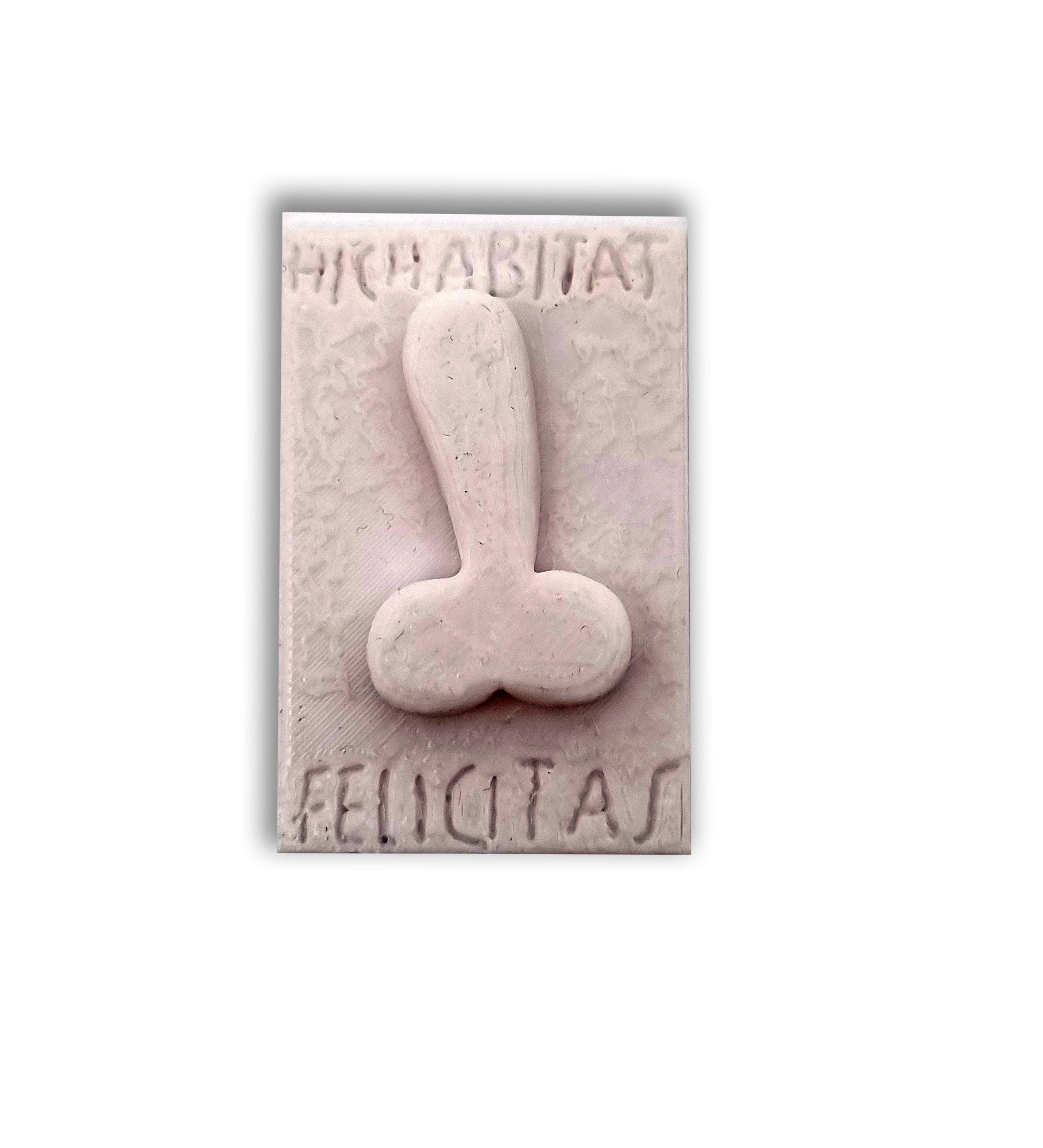 El imán 3D "Hic Habitat Felicitas" es un elegante objeto decorativo fabricado en PLA e impreso en 3D con técnica aditiva, que celebra el antiguo lema latino, que se traduce como "Aquí vive la felicidad".