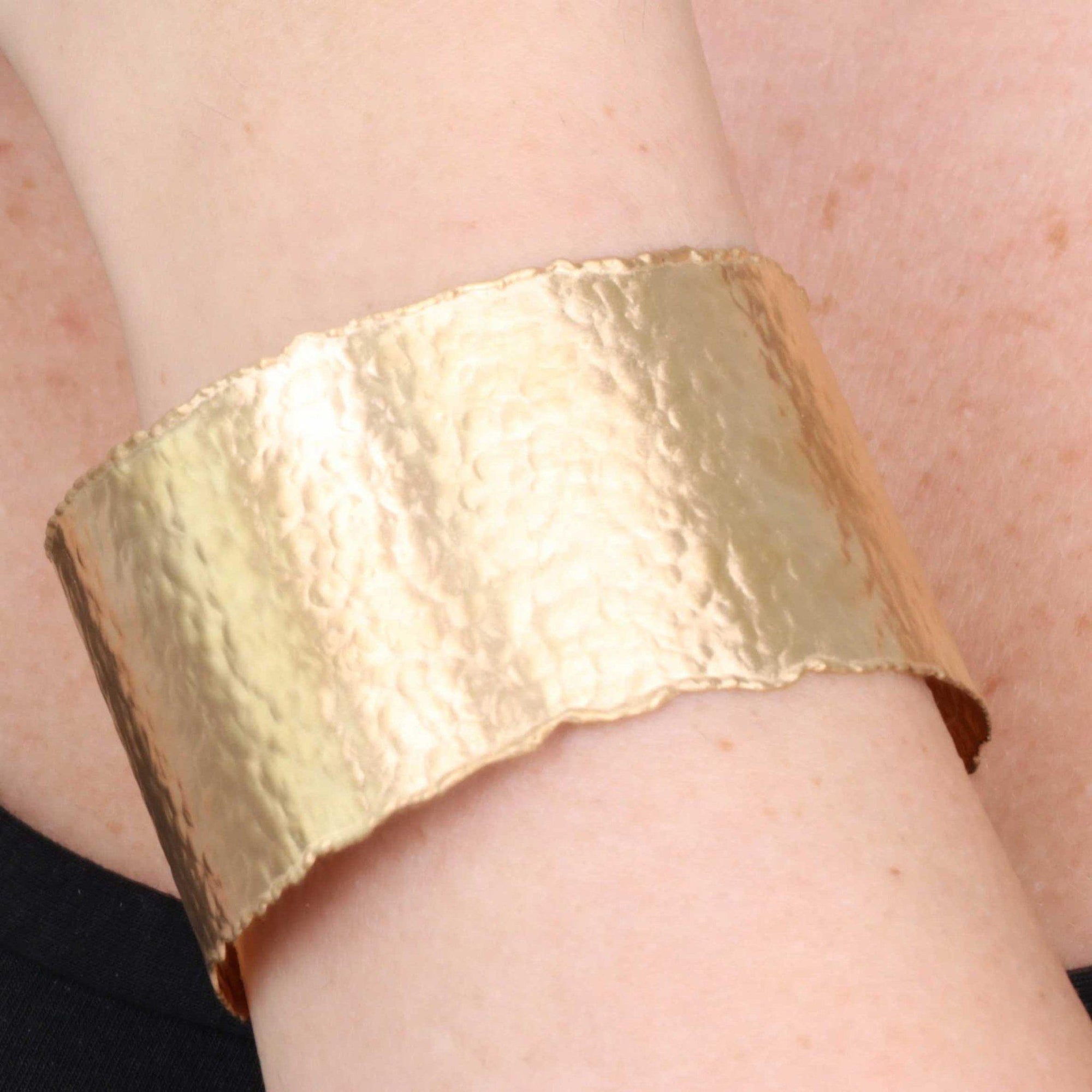 En la antigua Roma, los brazaletes se utilizaban a menudo como símbolos de estatus y prestigio. Las superficies de las pulseras se pueden pulir o trabajar con técnicas artesanales particulares, como grabado o arenado, para crear texturas únicas y distintivas. El arenado, a pesar de ser una técnica moderna, recuerda la antigua práctica de tratar las superficies de las joyas para hacerlas más interesantes visual y táctilmente. Este tipo de acabado mate aporta a la pulsera un toque de modernidad manteniendo un vínculo con la tradición orfebre de la antigüedad.