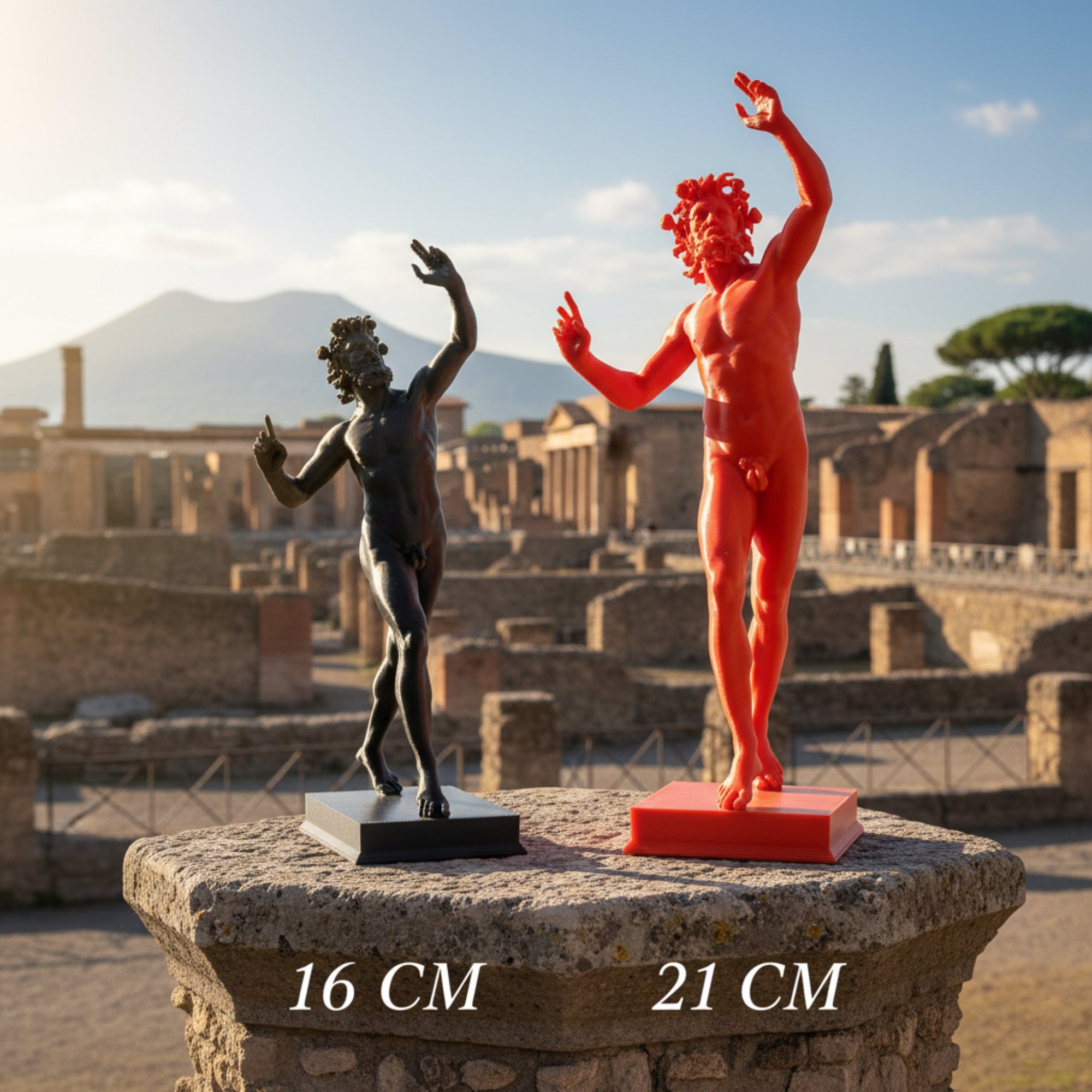 Le Faune dansant est l'un des symboles les plus célèbres de l'ancienne Pompéi, découvert en 1830 parmi les ruines de la célèbre Maison du Faune.