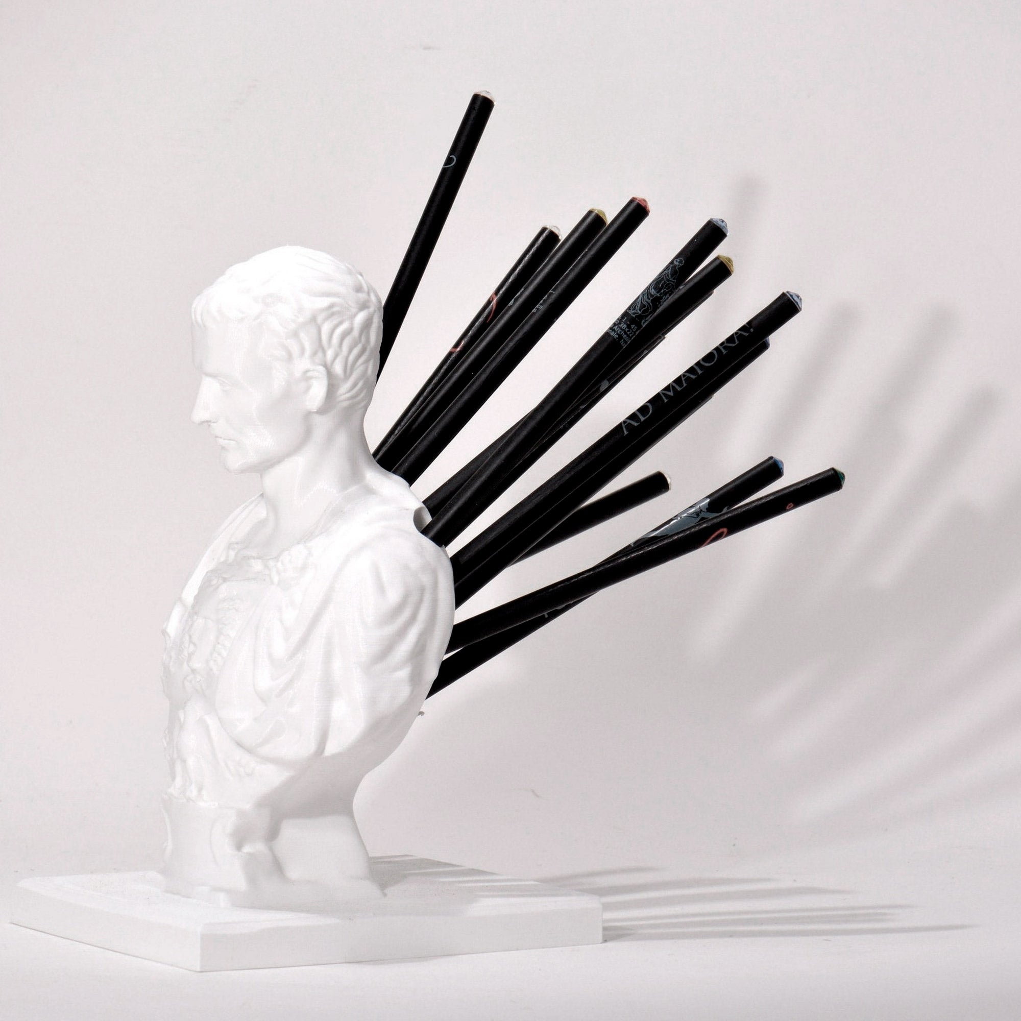 Le buste porte-stylo de Jules César est réalisé en PLA et imprimé en 3D avec une technique additive. C'est un accessoire élégant et fonctionnel pour votre bureau, mais aussi un hommage à l'art classique et à la culture ancienne.