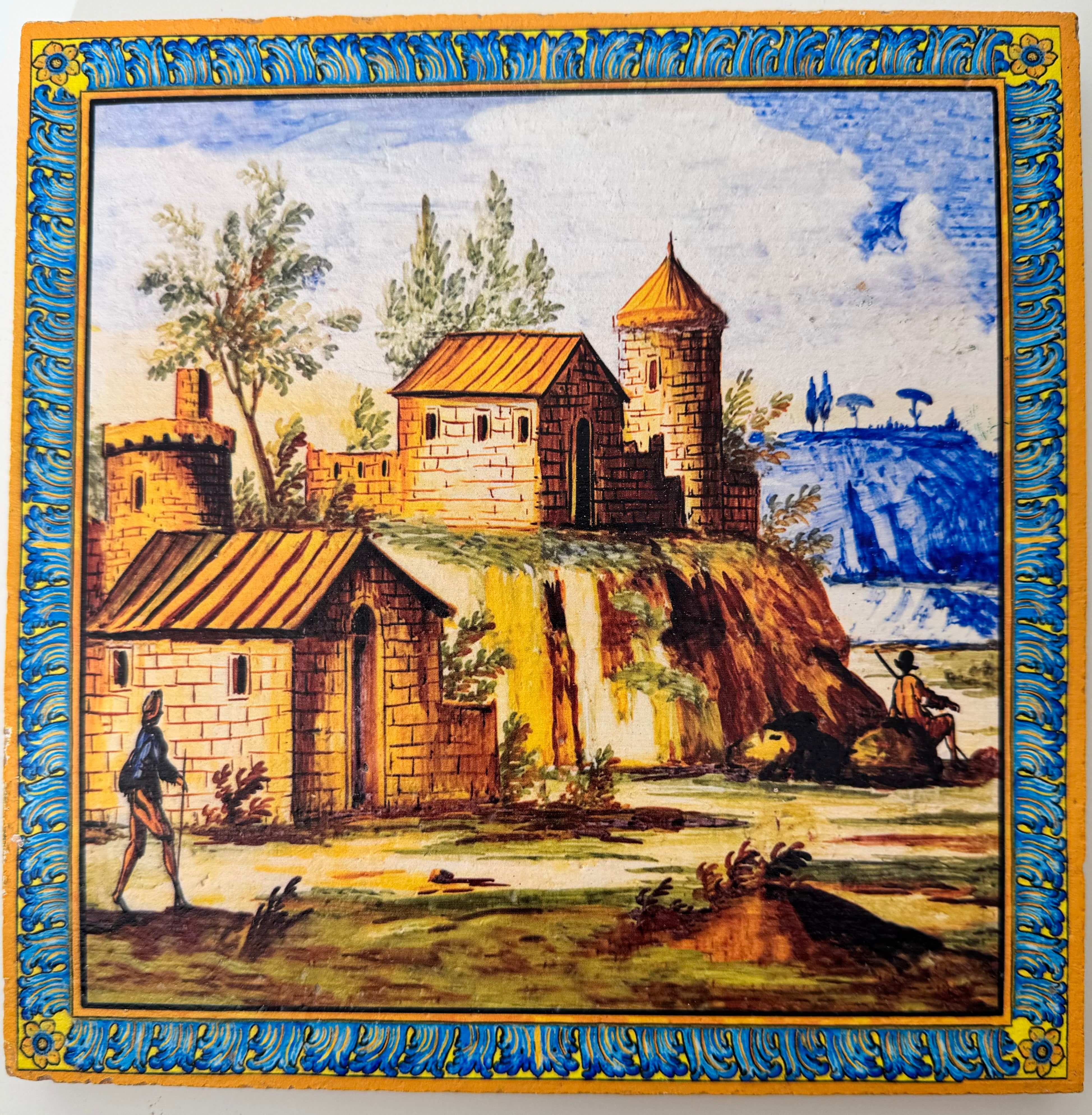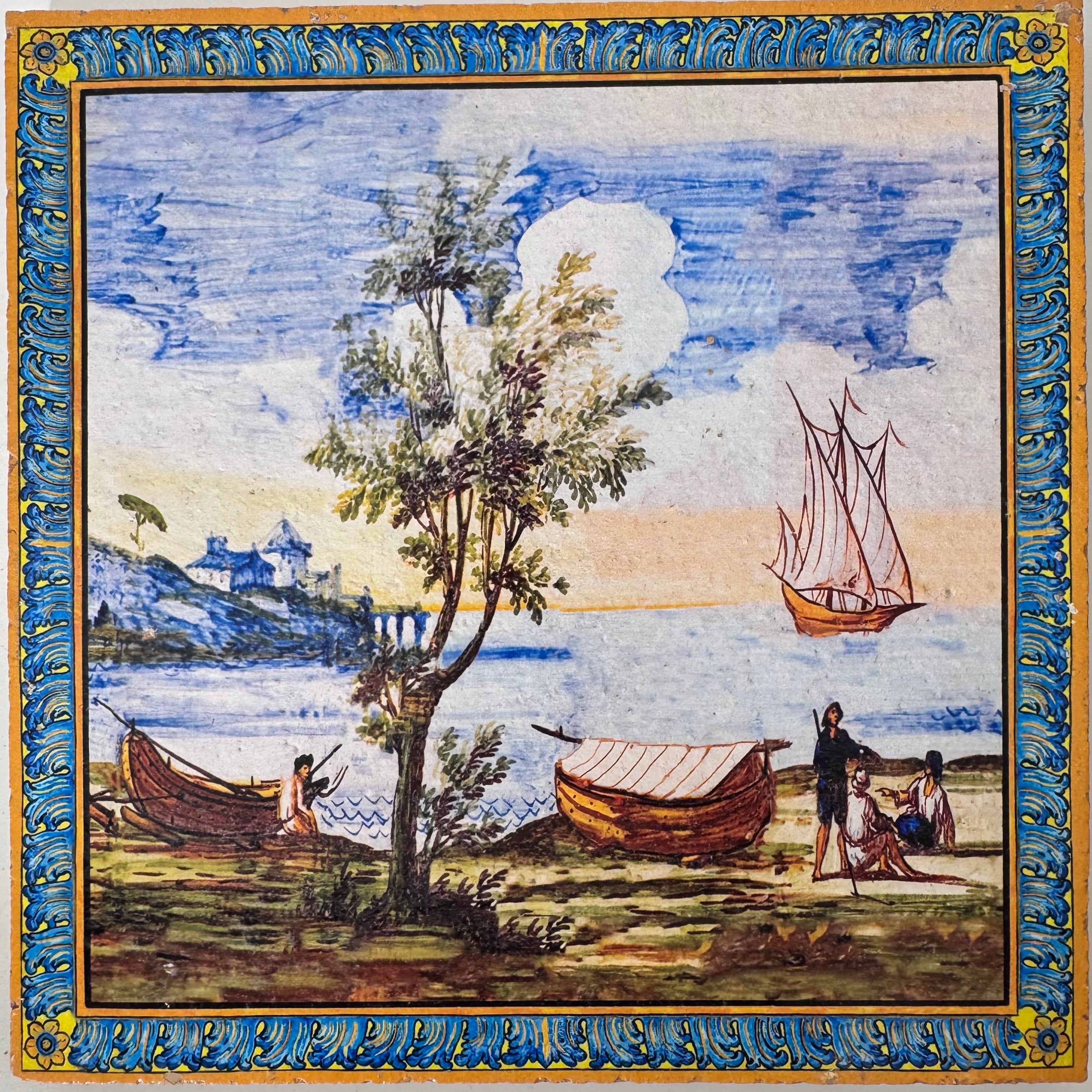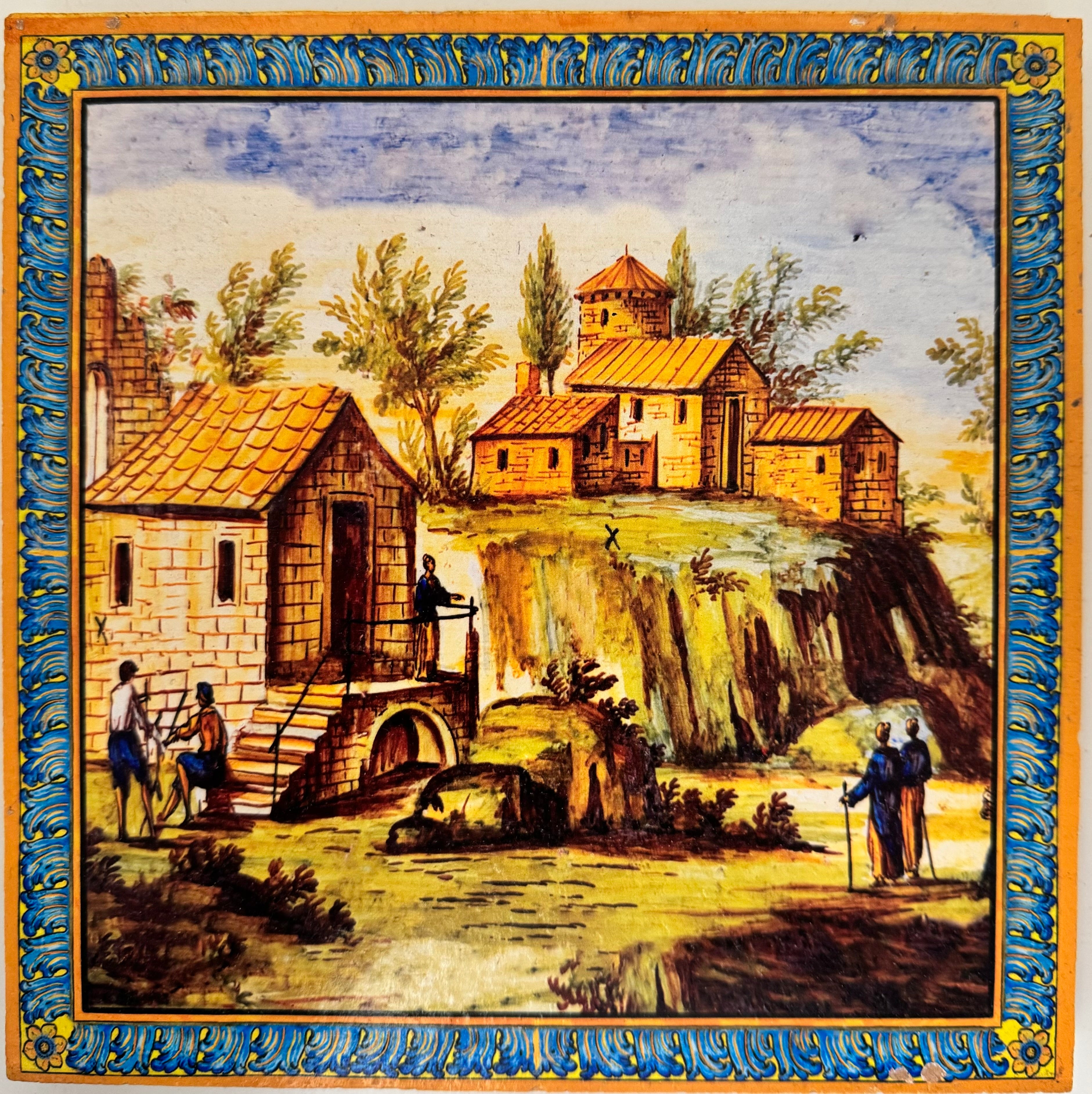 SERIE SANTA CHIARA Ispirati alle decorazioni del celebre chiostro napoletano, queste piastrelle riproducono paesaggi marini, campestri e montani, nonché scene di vita e di festa, raffigurati negli schienali delle panchine del Chiostro di Santa Chiara. Le maioliche del Chiostro furono realizzate dai “riggiolari”Donato e Giuseppe Massa su disegno dell'architetto Domenico Antonio Vaccaro che nel 1739 progettò il rifacimento dell’intero complesso monastico angioino.