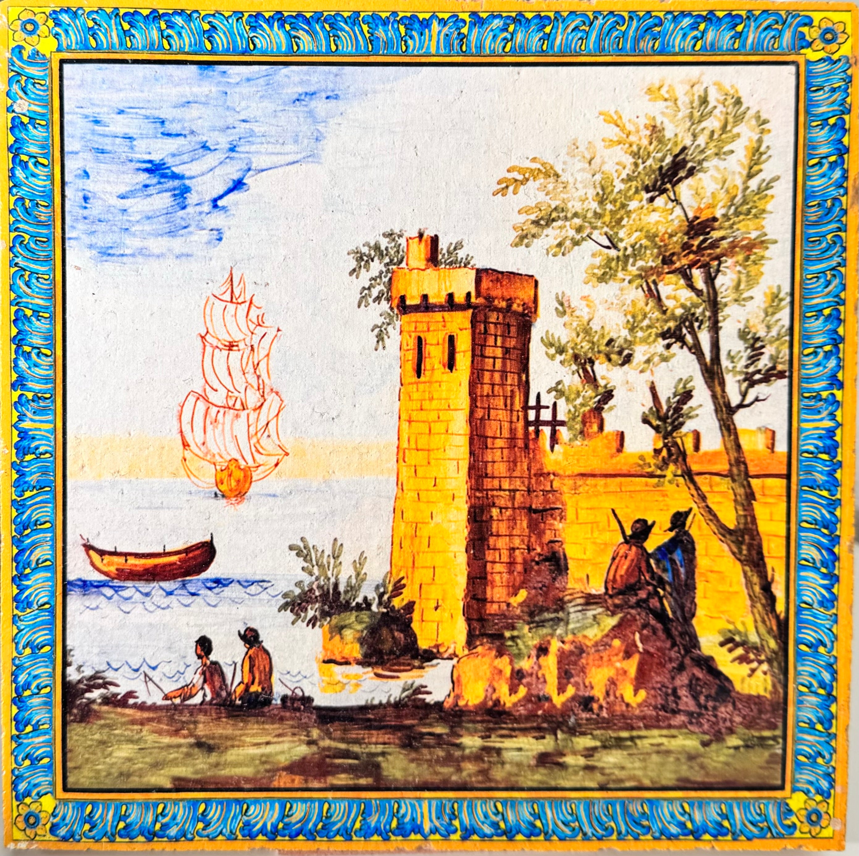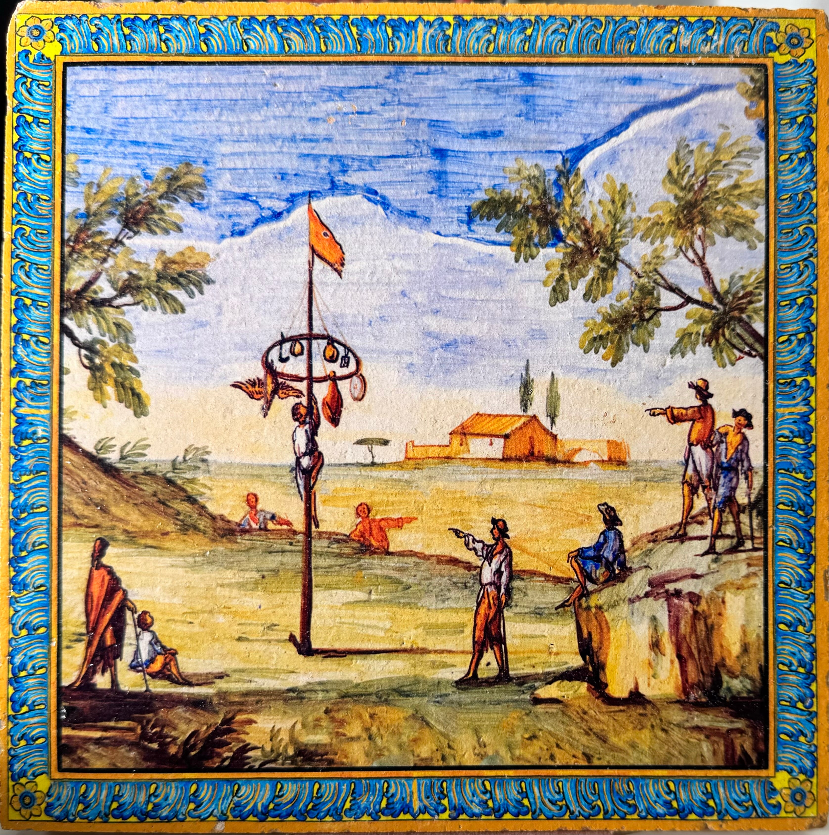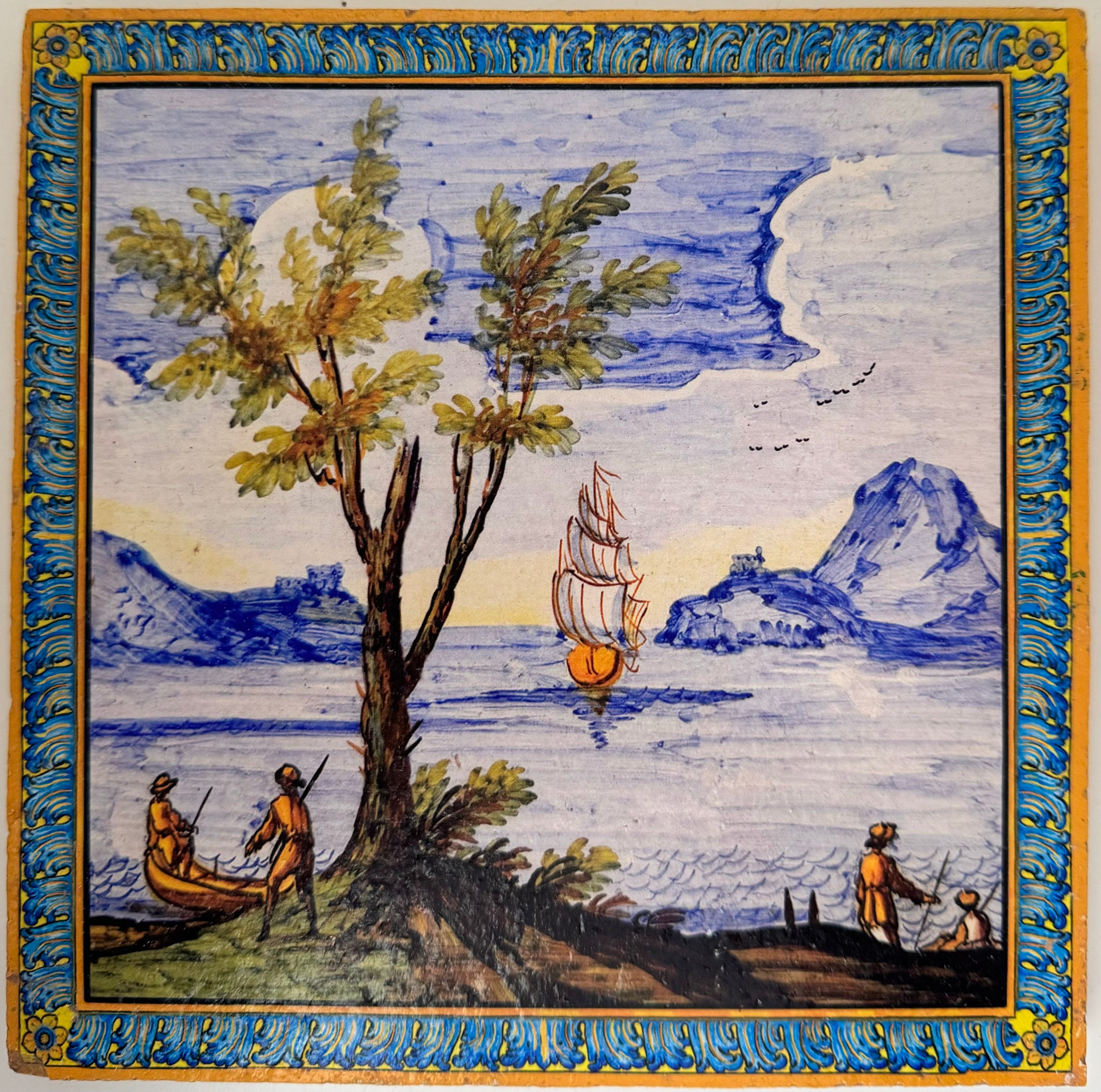 SERIE SANTA CHIARA Ispirati alle decorazioni del celebre chiostro napoletano, queste piastrelle riproducono paesaggi marini, campestri e montani, nonché scene di vita e di festa, raffigurati negli schienali delle panchine del Chiostro di Santa Chiara. Le maioliche del Chiostro furono realizzate dai “riggiolari”Donato e Giuseppe Massa su disegno dell'architetto Domenico Antonio Vaccaro che nel 1739 progettò il rifacimento dell’intero complesso monastico angioino.