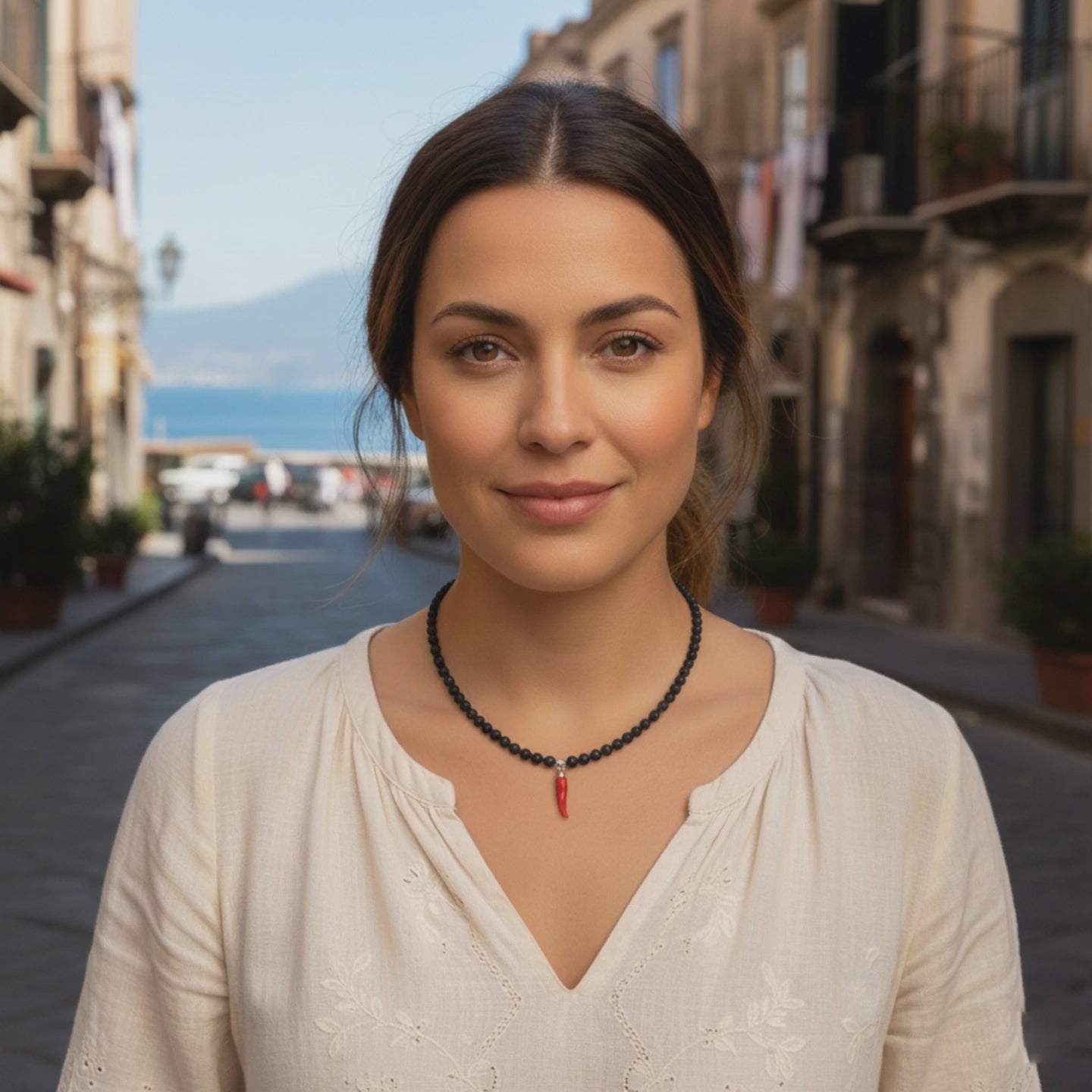 Scopri l’eleganza senza tempo della Collana in Corallo Rosso con Pietra Lavica e Onice. Questa creazione esclusiva è realizzata con materiali preziosi che richiamano le antiche tradizioni artigianali italiane. Il corallo rosso naturale, simbolo di protezione e forza, si unisce alla pietra lavica, elemento che rappresenta la forza della terra, e all'onice, famosa per il suo colore profondo e intenso, creando un contrasto visivo di rara bellezza. Il tutto è incorniciato da dettagli in argento 925, che aggiungono ulteriore lucentezza e raffinatezza al design.
