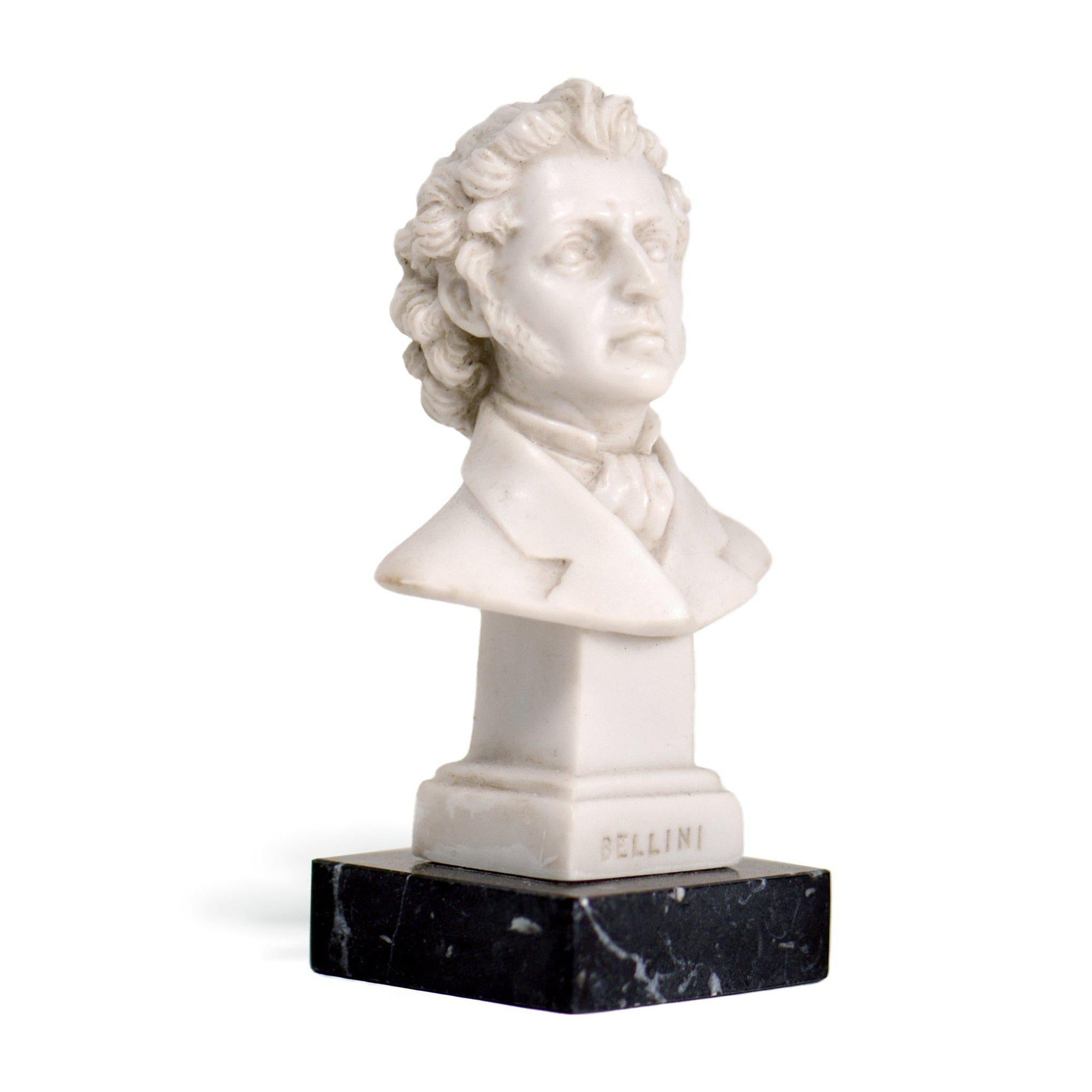 Il busto in marmo di Vincenzo Bellini è una riproduzione dettagliata del celebre compositore siciliano del XIX secolo, famoso per le sue opere liriche. Realizzato in marmo bianco di Carrara, questo busto cattura l'eleganza e la maestria dell'arte scultorea, rendendolo un pezzo perfetto per gli amanti della musica e dell'arte classica. La scultura si ispira all'immagine iconica di Bellini, celebrato per la sua capacità di creare melodie affascinanti e opere indimenticabili come Norma, La Sonnambula, I puritani eIl pirata.