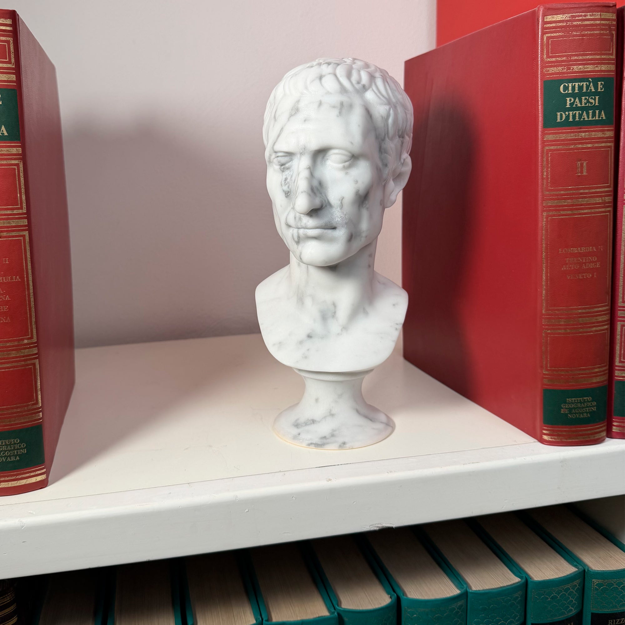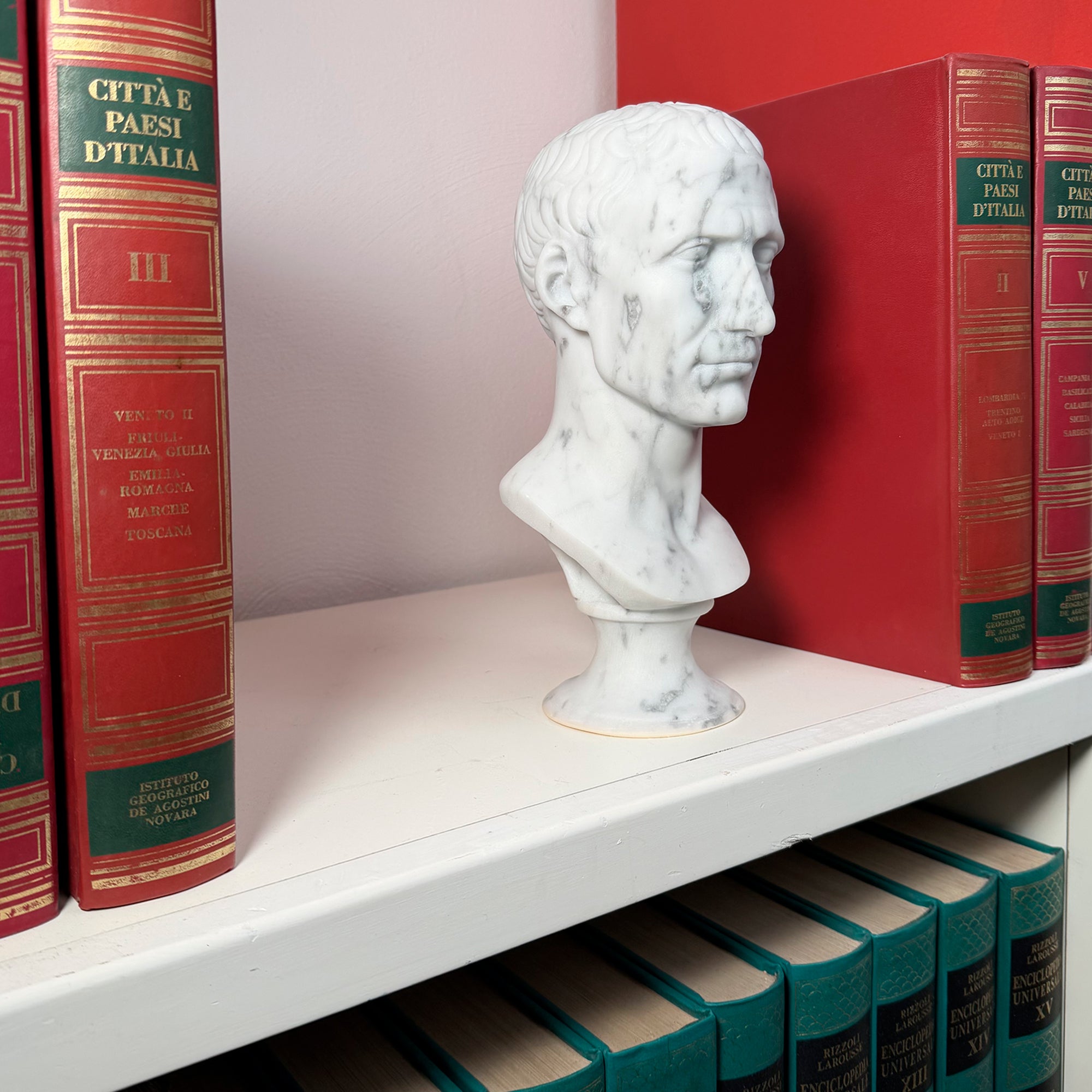 Добавьте штрих элегантности и римской истории в ваше пространство с этой головой Юлия Цезаря из каррарского мрамора высотой 30 см: идеально подходит в качестве элемента декора для кабинетов, библиотек, гостиных, а также как изысканный подарок для любителей искусства и классики.